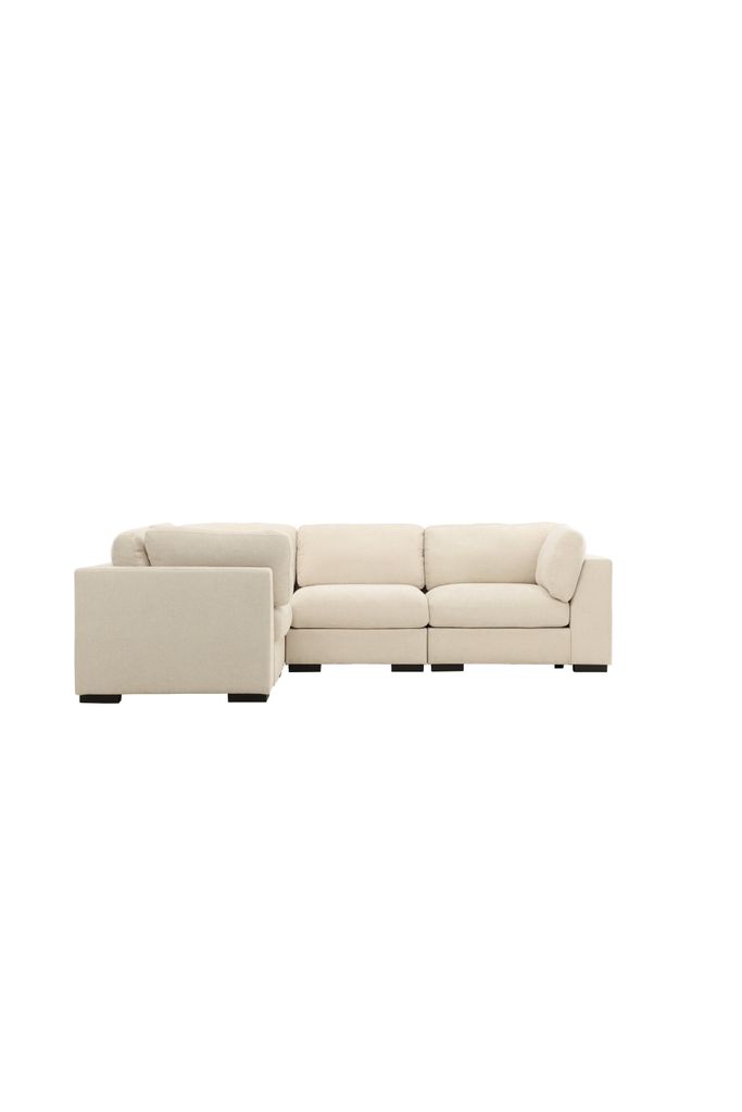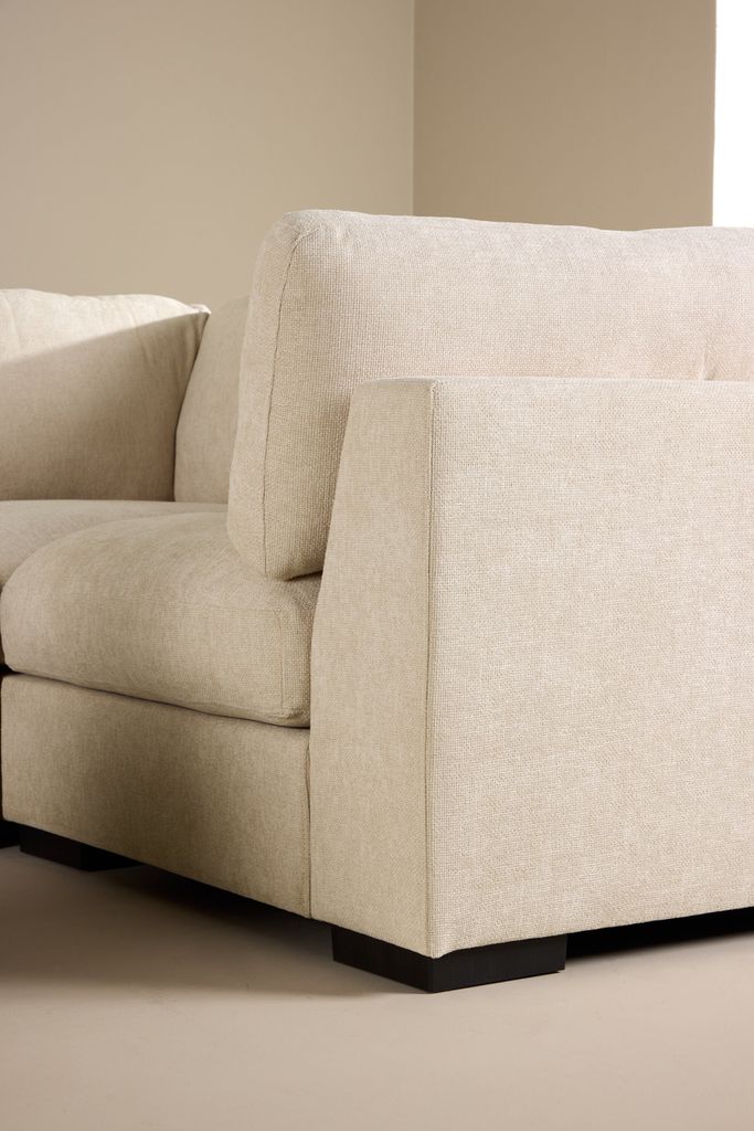 Stilren och bekväm hörnsoffa med tidlös beige färg och svarta ben, perfekt för moderna hem.