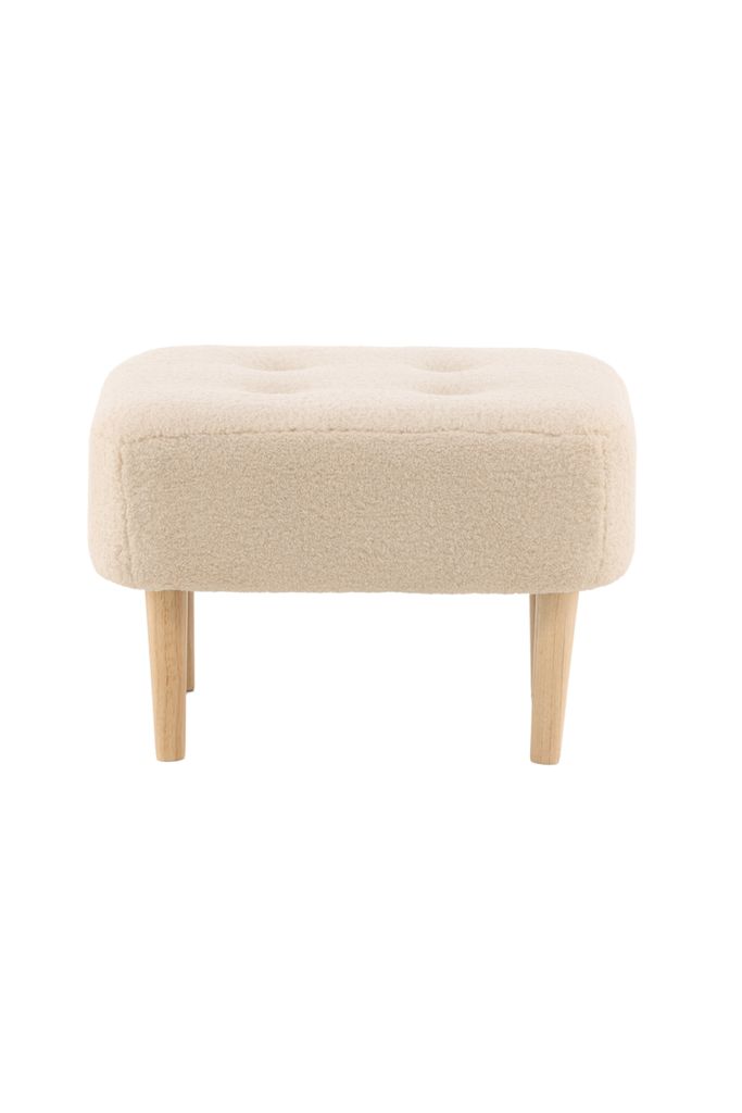 Trendig sittpuff i benvit fleece med träben. Perfekt för att skapa en luftig och stilfull atmosfär i ditt hem.