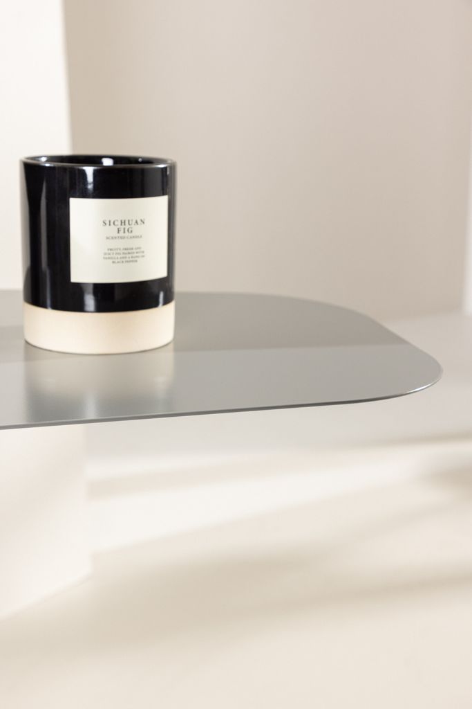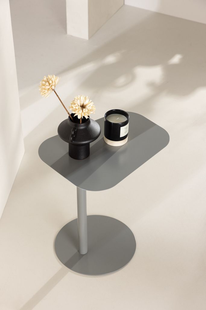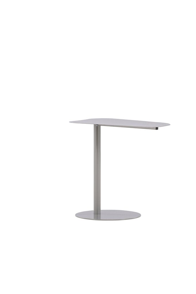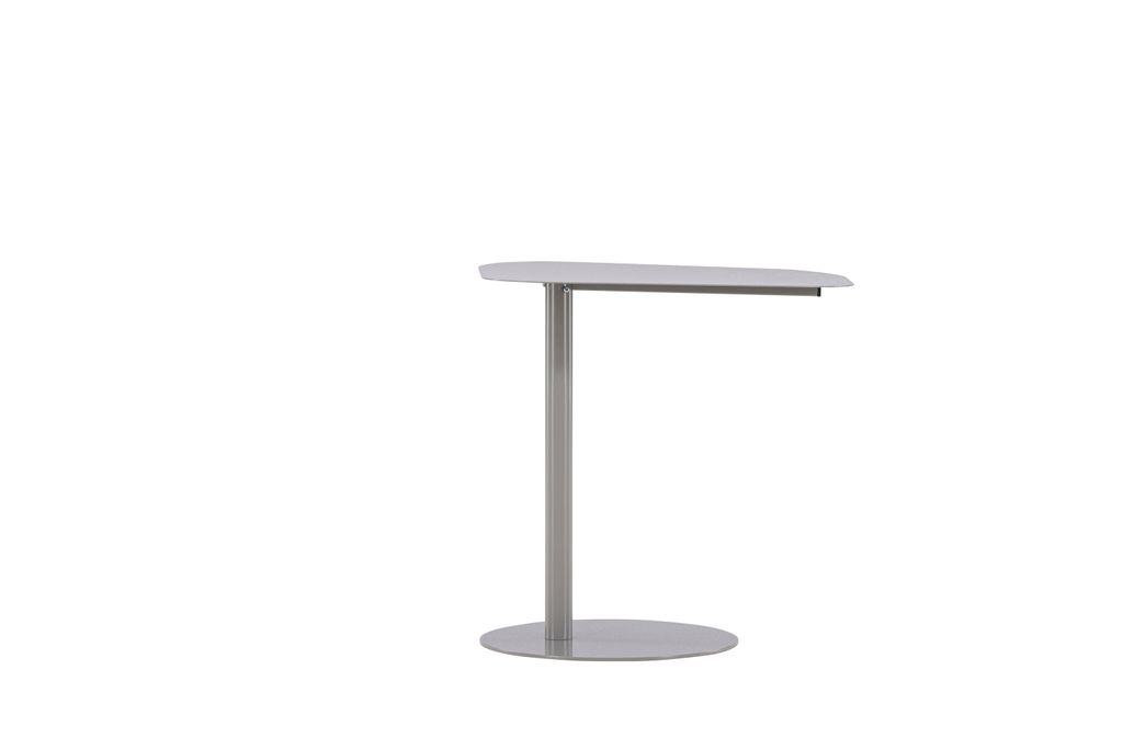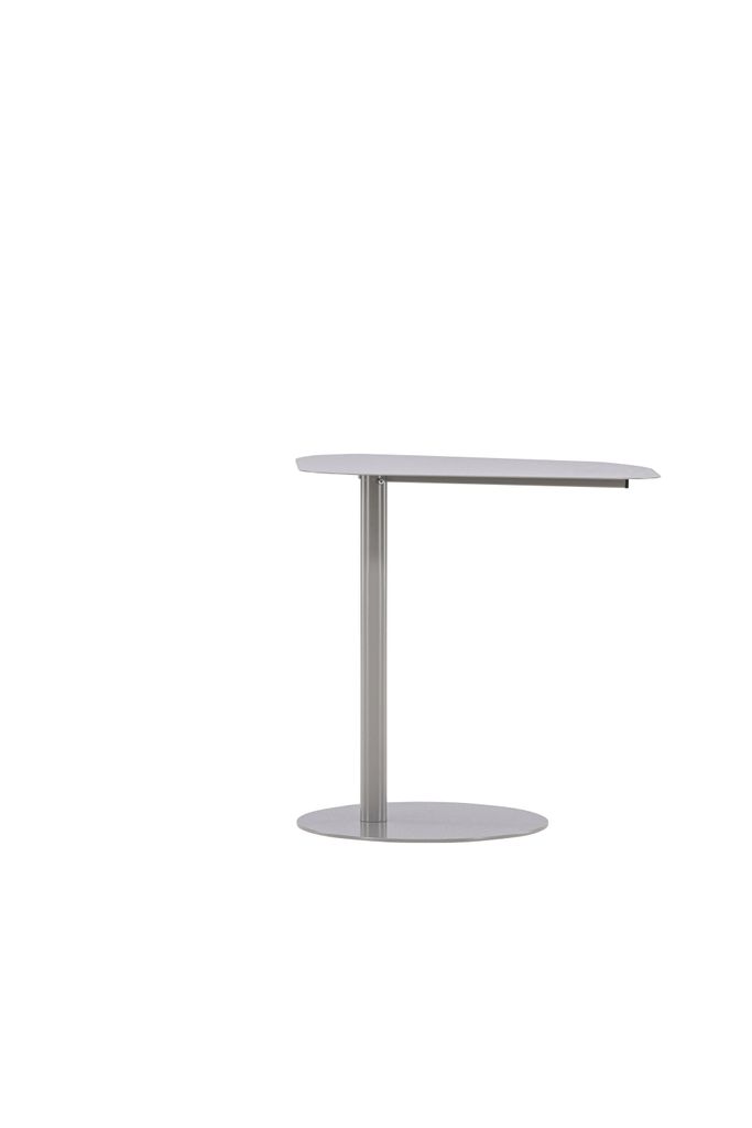 Stilrent grått sidobord i skandinavisk design. Perfekt för alla rum med sin moderna ovala topp och hållbara stålram.