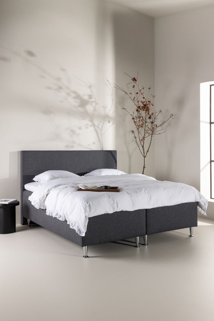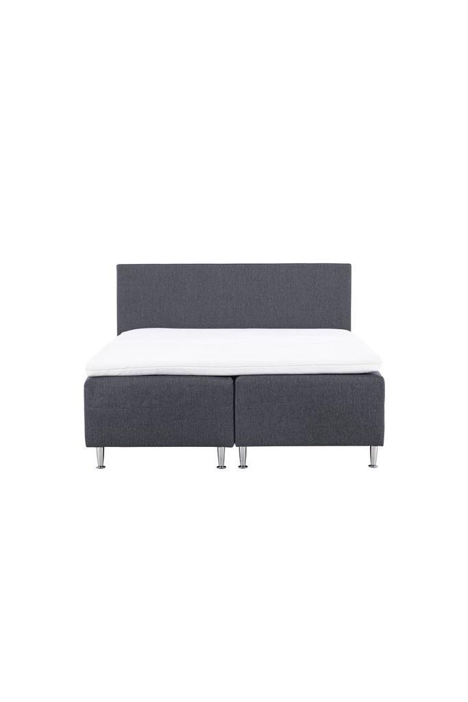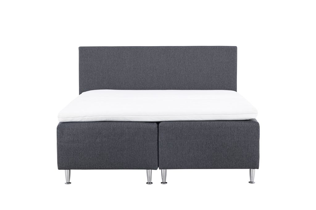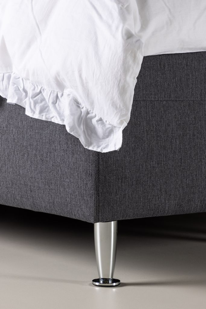 Mesa säng, 180 cm bred, klädd i elegant mörkgrått tyg med moderna plastben. Välj mellan medium och fast fasthet.