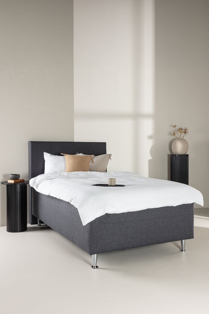 Upplev en god natts sömn med Mesa, en stilren mörkgrå ramsäng som kombinerar elegans och komfort.