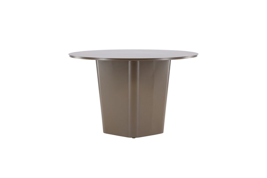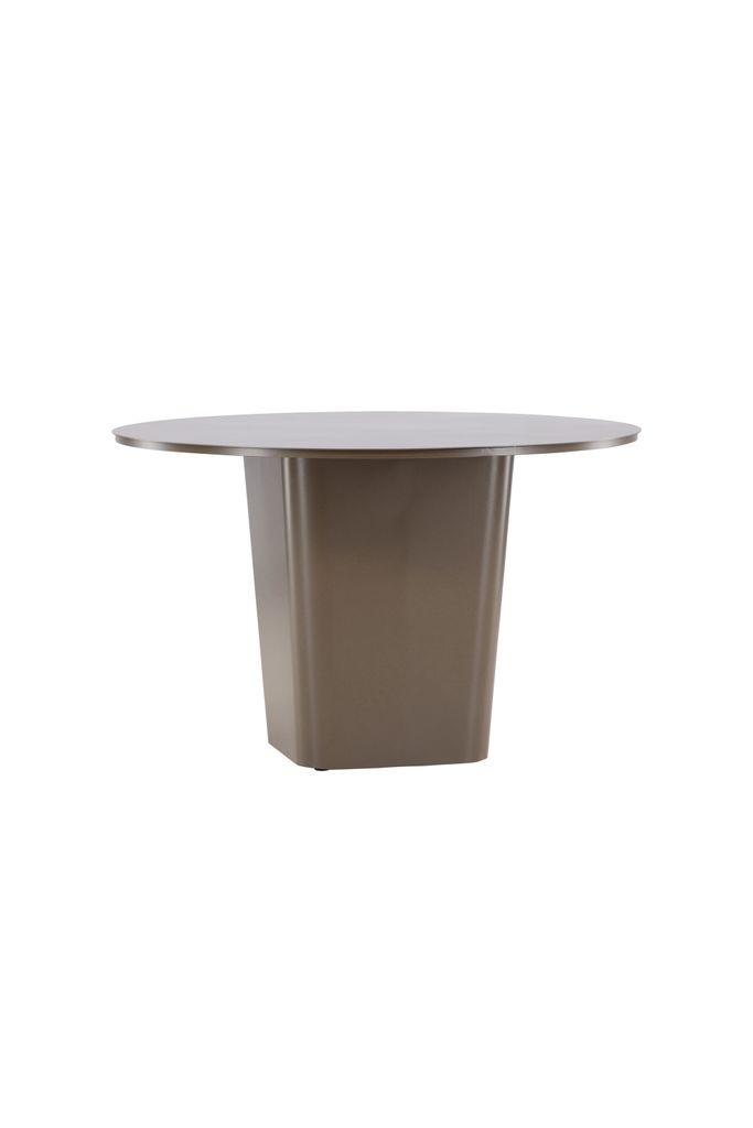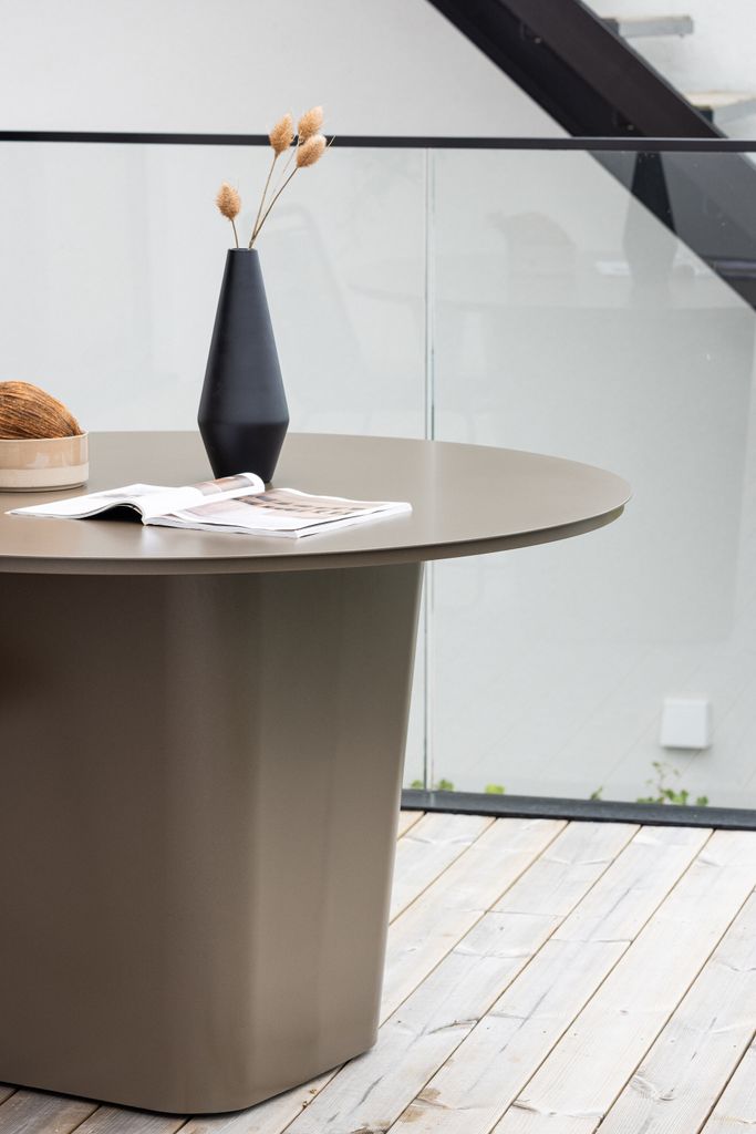 Med en generös diameter på 120 cm finns det gott om plats för både gäster och rätter. Den varma bruna nyansen av bordets aluminiumfinish ger en rustik och inbjudande känsla till ditt hem. Bordets breda fot erbjuder stabilitet och en touch av elegans, vilket gör det till ett imponerande tillskott till din inredning.