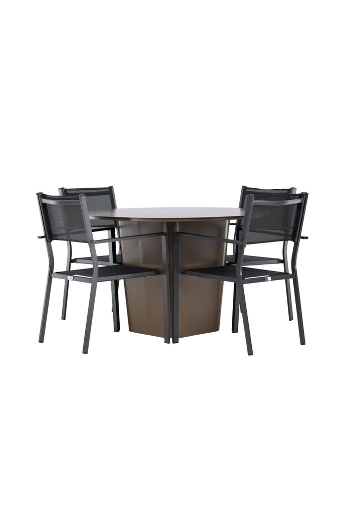 Bordet Santa är designat för att vara centrum för gemenskap. Med en diameter på 120 cm finns det gott om plats för att samla familj och vänner. Den tåliga aluminiumytan i brun färg är inte bara stilren utan även lätt att underhålla, vilket gör det perfekt anpassat för utomhusmiljöer.