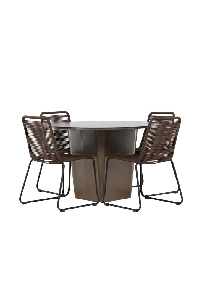 Denna matgrupp är inte bara praktisk utan också estetiskt tilltalande, vilket skapar en atmosfär av sofistikerad enkelhet. Med fyra Lindos stolar inkluderade, är det idealiskt för både små och större utomhusutrymmen.