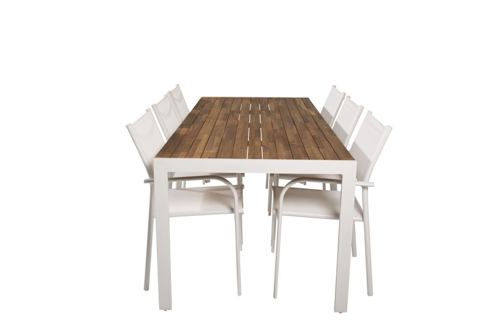 Venture Home Togo & Kenya Rektangulärt Matbord 200 x 100 Vit + 6 st Positionsstolar Natur