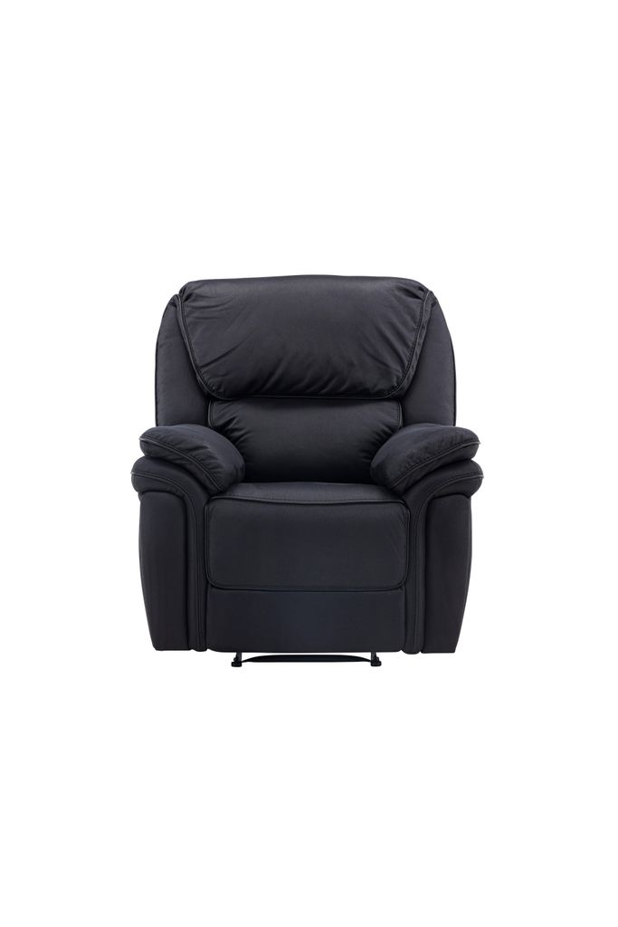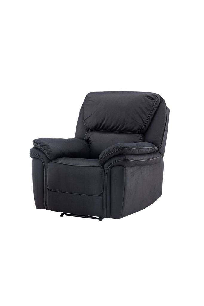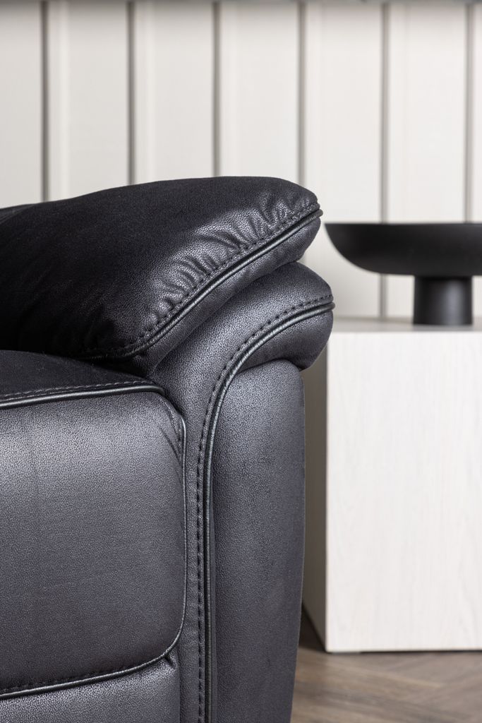 Svart reclinerfåtölj i mikrofiber med smart reclinerfunktion för optimal komfort och ergonomi.