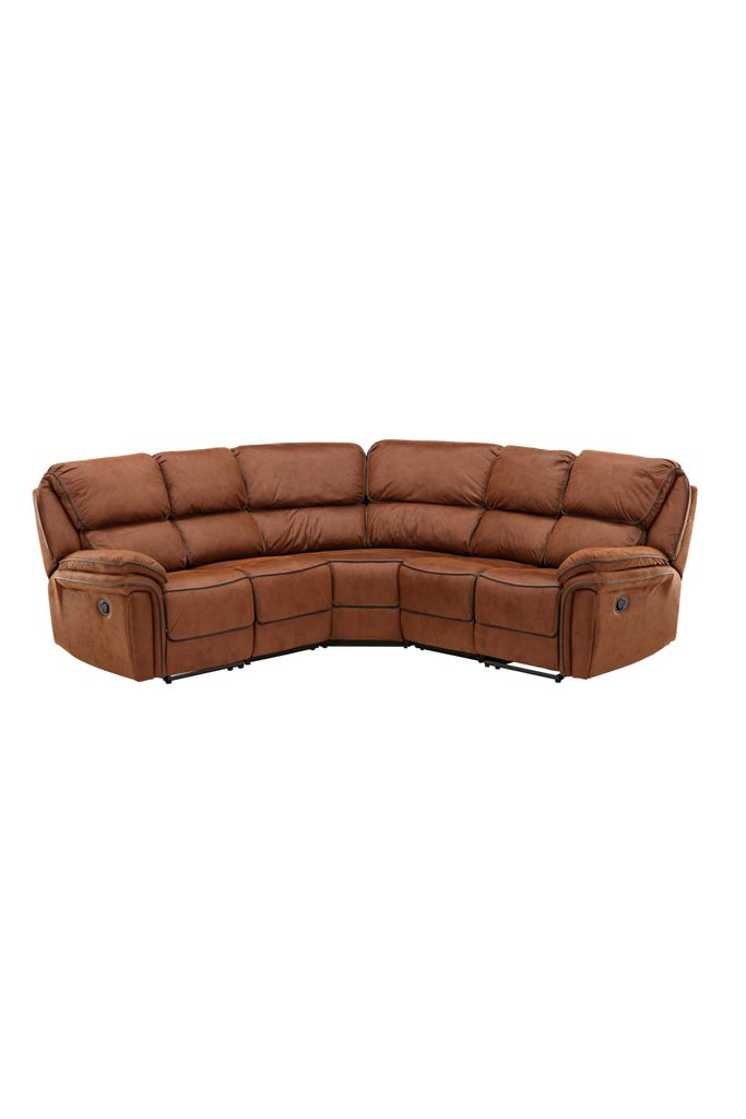 Lyxig hörnsoffa i brun mikrofiber med reclinerfunktion för maximal komfort och stil i ditt vardagsrum.