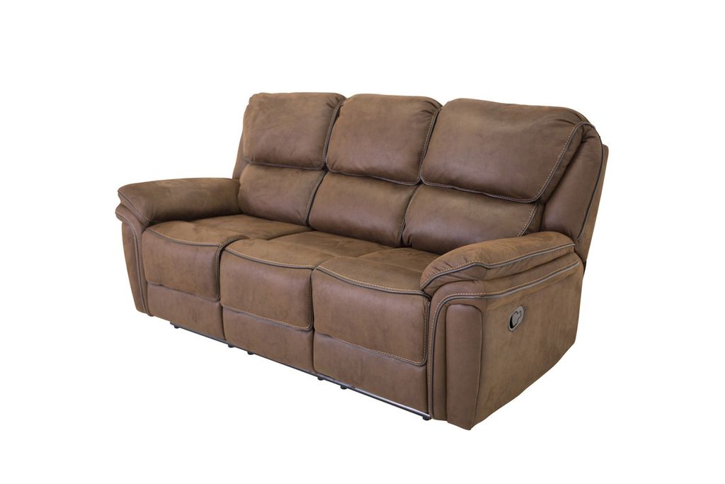 Lyxig 3-sits soffa i brun mikrofiber med justerbara funktioner och hög komfort.