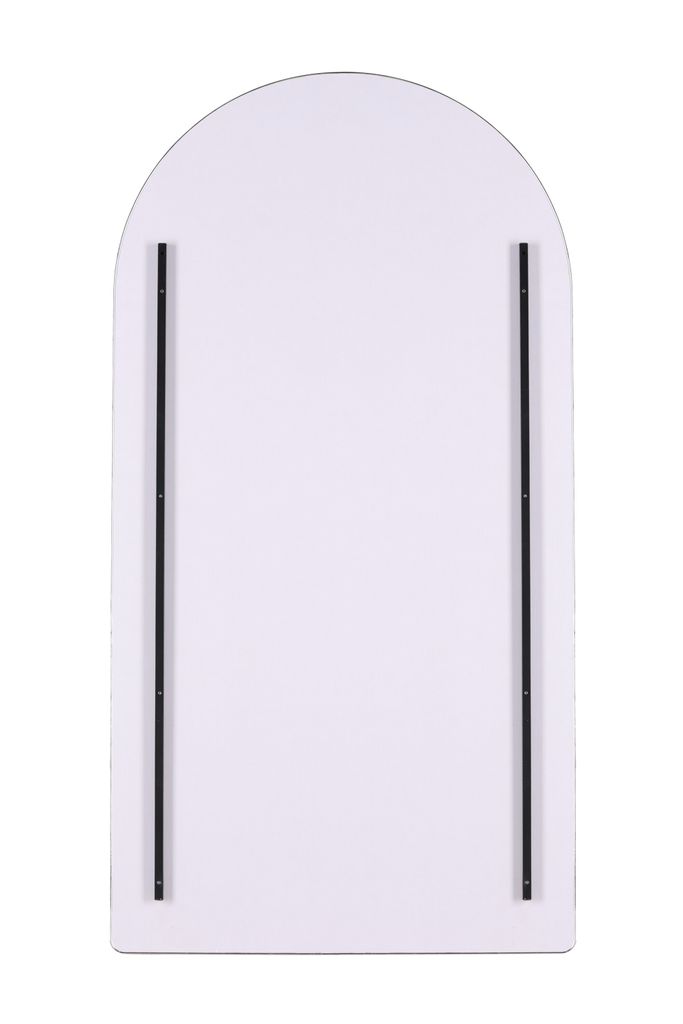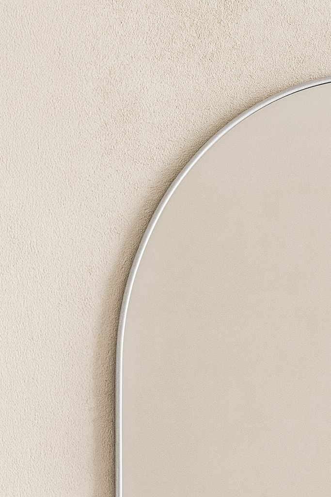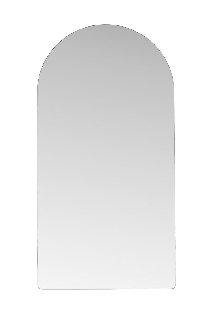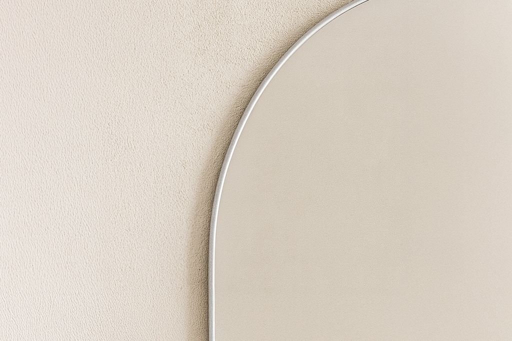 Denna spegel har en silverfärgad ram som omger glaset på ett stilrent sätt. Den ovala formen upptill ger ett mjukt och harmoniskt uttryck, vilket gör att spegeln smälter in i alla typer av inredningar.