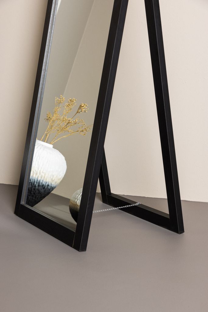 Den svarta färgen på ramen skapar en stark kontrast mot spegelglaset, vilket bidrar till en modern och stilren estetik. Sebring spegeln är inte bara praktisk för vardagsbruk utan fungerar också som en konstnärlig statement-piece, perfekt för att lyfta inredningens övergripande stil.