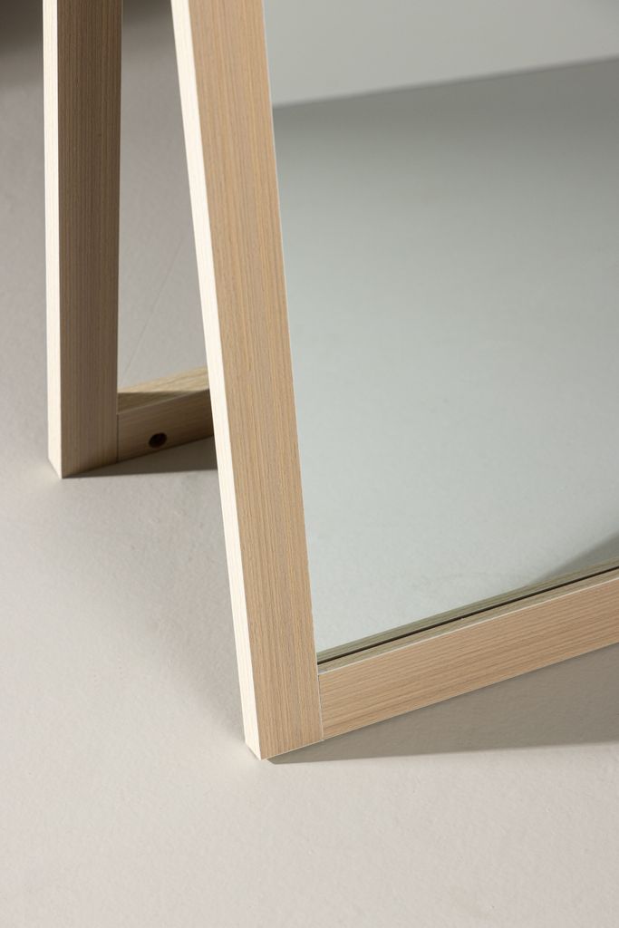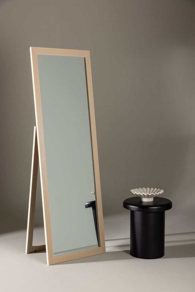 Spegeln är designad för att passa perfekt även i mindre utrymmen, och den reflekterande ytan skapar en illusion av mer rymd och ljus. Den stabila konstruktionen och den lutande designen gör att spegeln står säkert, samtidigt som den ger en bekväm synvinkel.