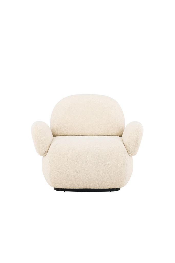 Sevilla fåtölj i mjukt chenille-tyg, elegant beige färg, ger ditt rum stil och komfort.