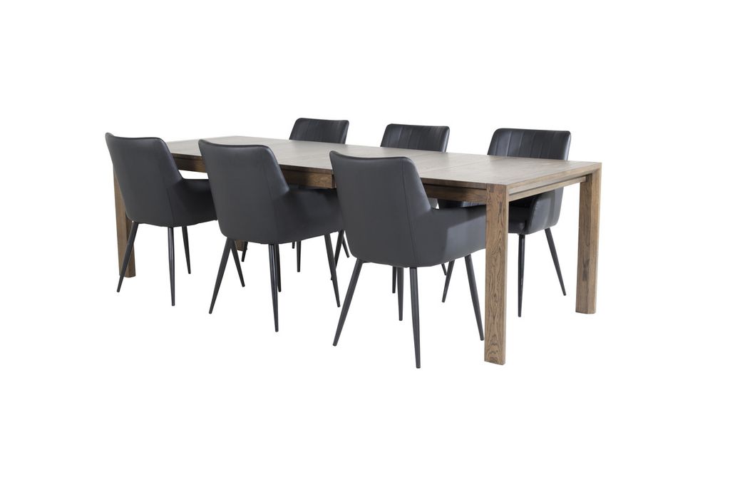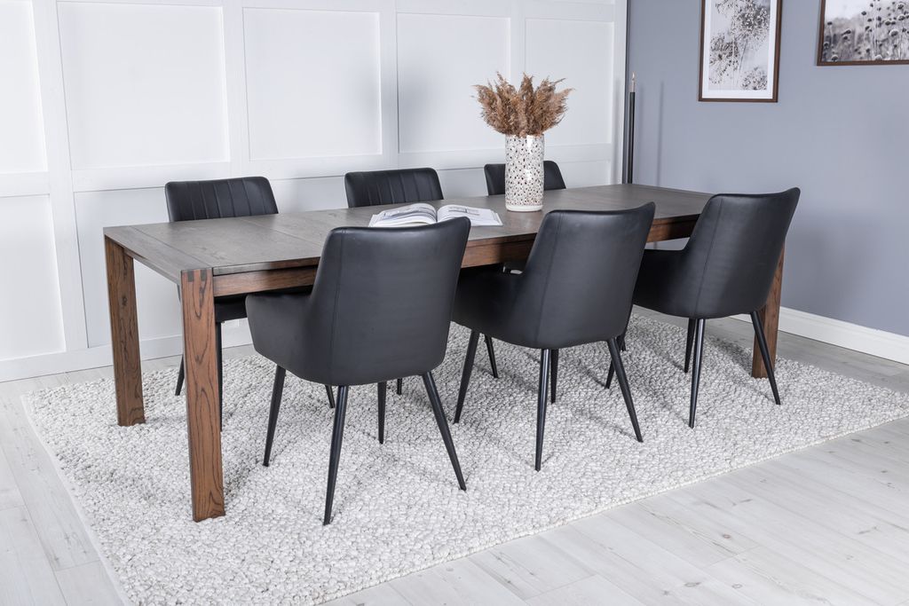 Comfort, våra robusta och väl tilltagna matstolar. Kombineras här med matbordet Slider i en snygg ek-look förlängningsmöjlighet. En matgrupp som fungerar bra vid både små och stora sällskap!