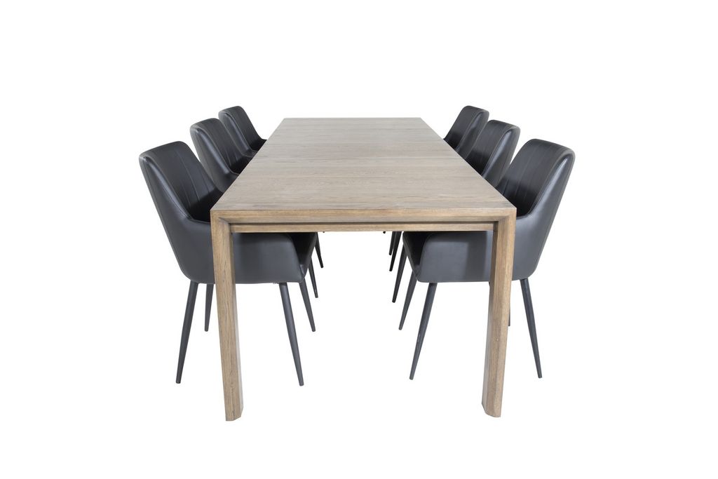 Venture Home Slider & Comfort Rektangulärt Matbord 170 x 95 Natur + Matstolar 6-pack Svart