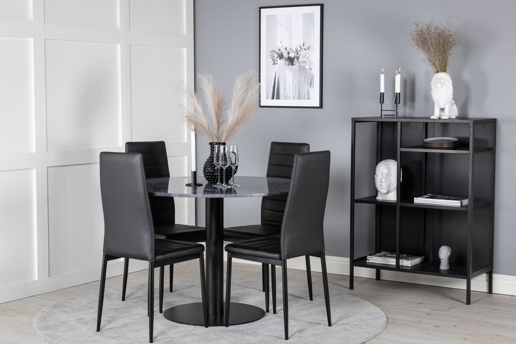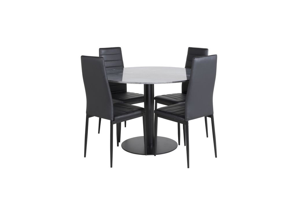 Venture Home Slim & Estelle 4 st Matstolar Svart + Runt Matbord ⌀106 Mörkgrå