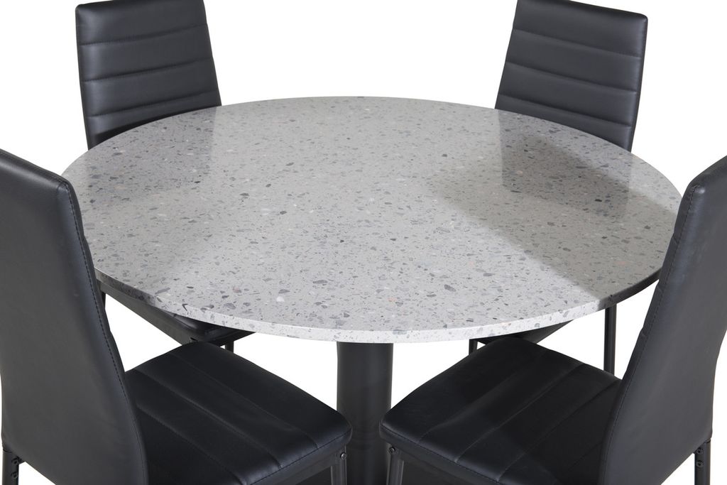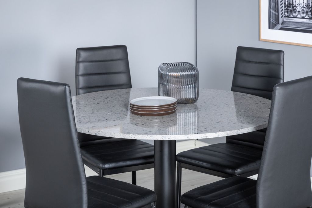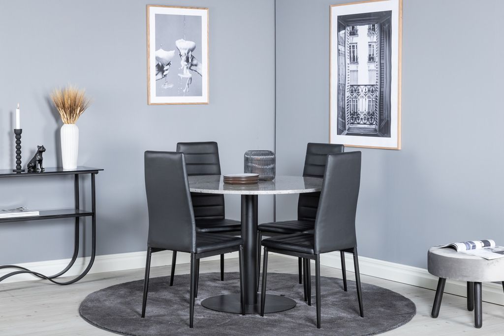 Venture Home Slim & Razzia 4 st Matstolar Svart + Runt Matbord Ø106 Grå