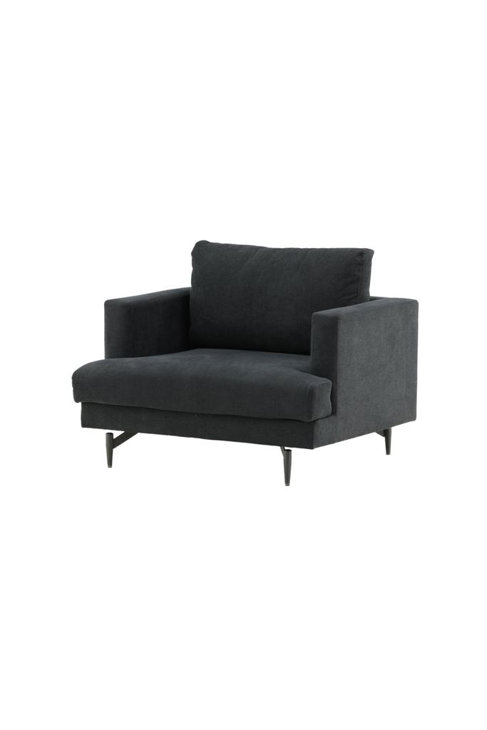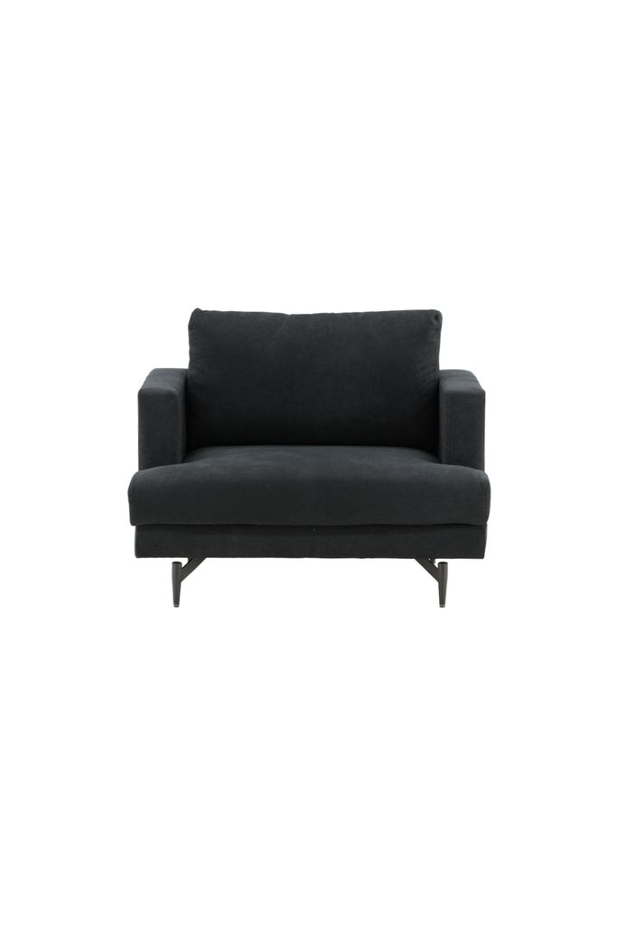 Inred ditt hem med stil med Sofia Fåtölj från Venture Home. Denna fåtölj erbjuder en minimalistisk nordisk design med mjuka kuddar och en stilren klädsel i svart polyestertyg. Benen av svart pulverlackerad metall ger ett lyft och bidrar till ett elegant blickfång. Tack vare den klädda baksidan kan fåtöljen placeras mitt i rummet och fungera som en stilikon i ditt hem eller som en del av en större soffgrupp.