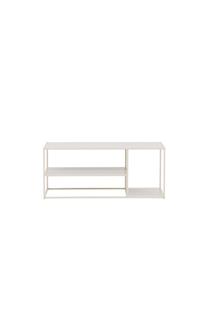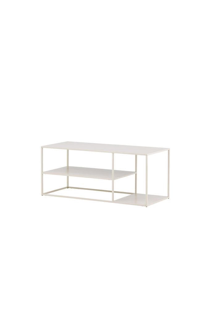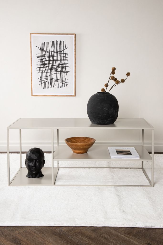 Med sina tre avlastningsytor erbjuder bordet gott om plats för dekorationer och förvaring. De raka linjerna och den luftiga konstruktionen förstärker det moderna uttrycket, vilket gör det till ett självklart val som soffbord, avlastningsyta eller sidobord.