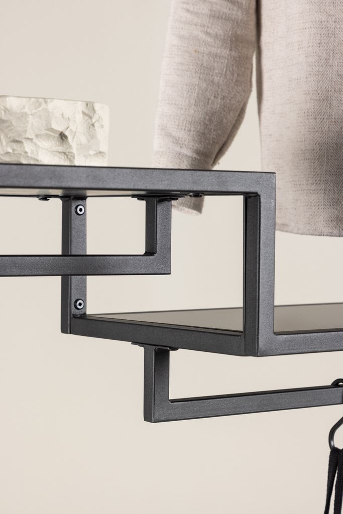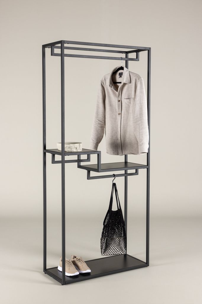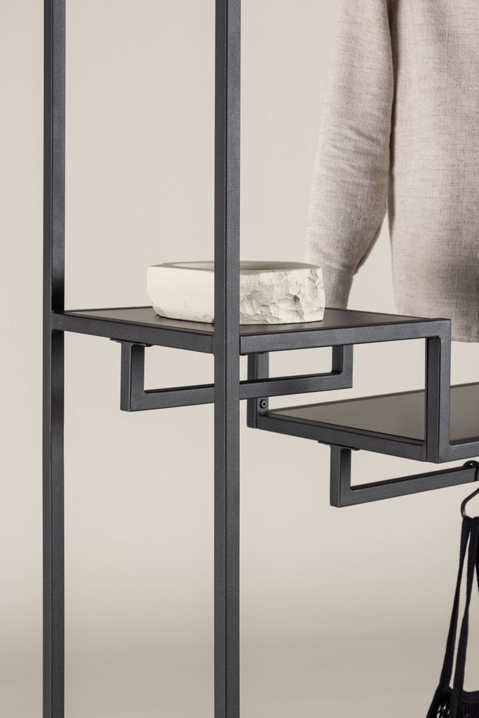 Organisera stilfullt med Staal klädhängare i svart stål, komplett med hyllplan och galghängare.