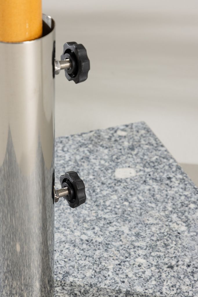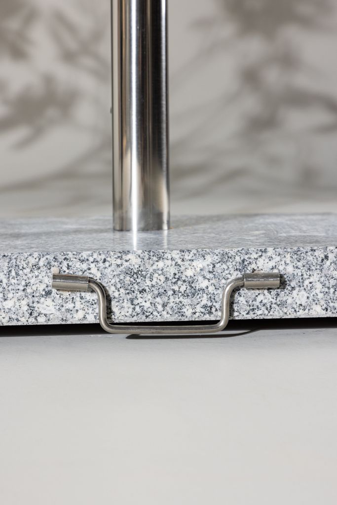 Elegant parasollfot i marmorliknande granit med handtag. Stabil, frosttålig och enkel att förvara. Vikt 40 kg.