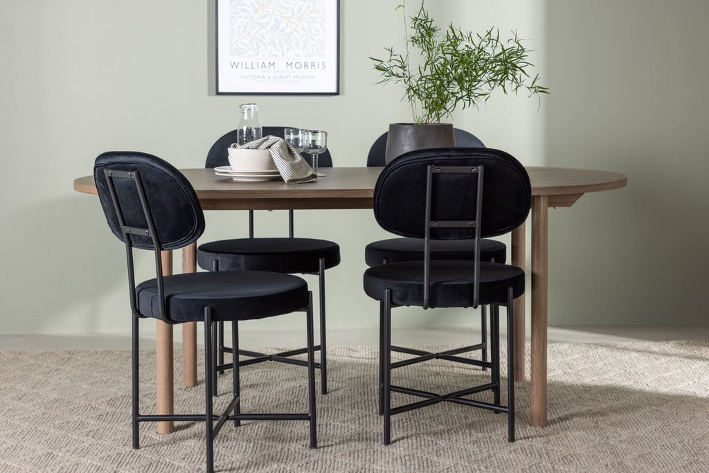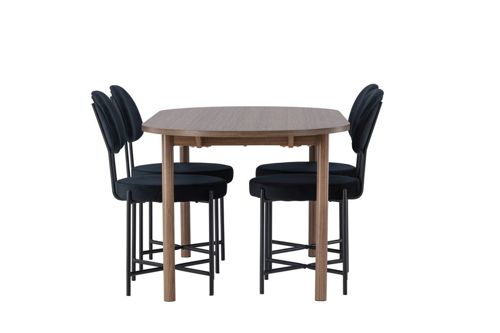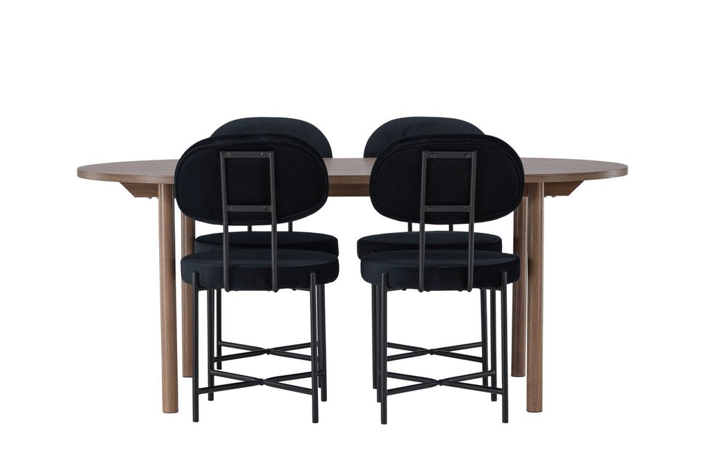Venture Home Stella & Andy 4 st Matstolar Svart + Ovalt Matbord 180 x 90 Natur