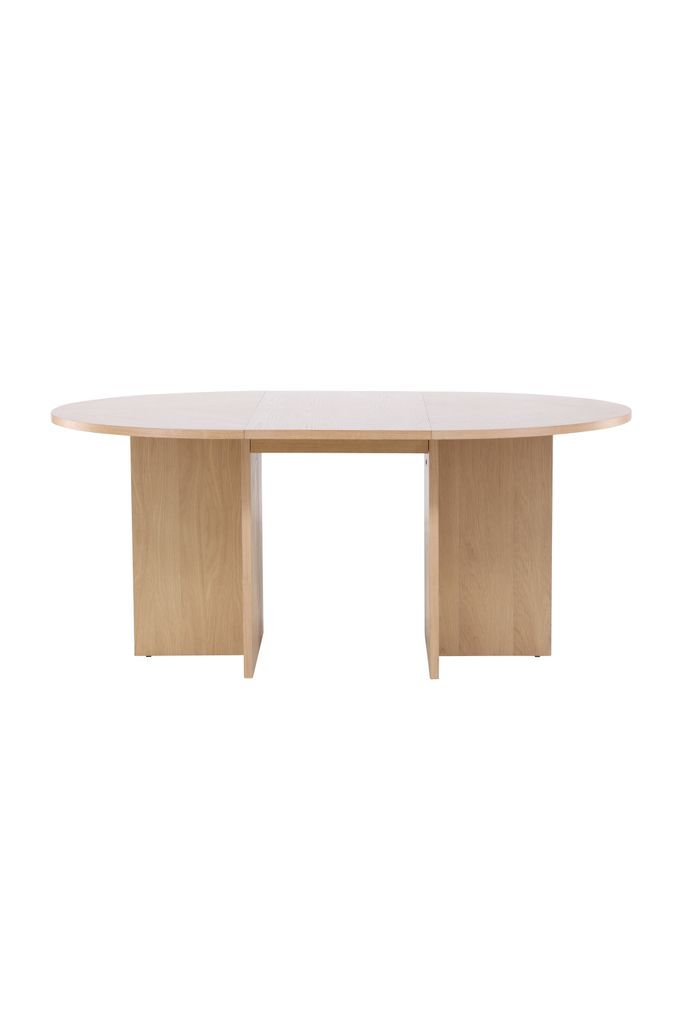 Strada matbord i vittvättad fanerträ med förlängningsfunktion, perfekt för både vardag och fest.