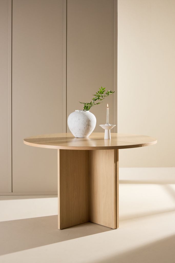 Med en diameter på 120 cm erbjuder Strada gott om plats för dina närmaste. Vid behov kan bordet enkelt förlängas till 170 cm, vilket är perfekt för både intima middagar och större sammankomster. Den stabila konstruktionen och högkvalitativa fanerträet säkerställer att bordet förblir en pålitlig del av ditt hem i många år framöver.