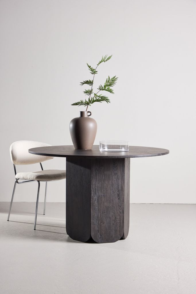 Bordet har en svart, tidlös finish som harmoniserar vackert med både moderna och klassiska interiörer. Materialet av MDF och paper laminate ger en hållbar och lättskött yta. Bordets runda form främjar sociala måltider och samtal där alla deltagare kan interagera på ett naturligt sätt.