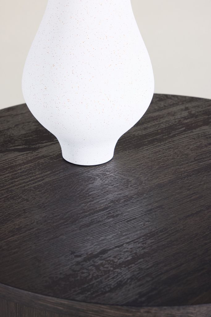 Soffbordet Tekla från Venture Home är en perfekt blandning av stilren design och praktisk funktion. Bordsskivan är rund och tillverkas i högkvalitativ MDF med en djup svart kulör, vilket ger en modern och sofistikerad känsla till ditt vardagsrum.