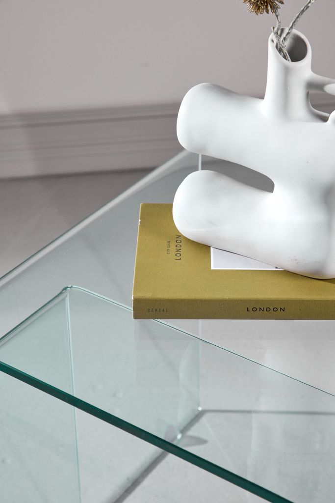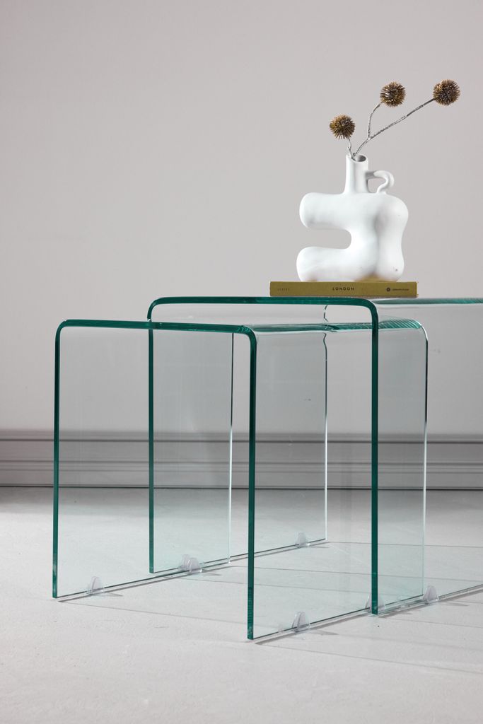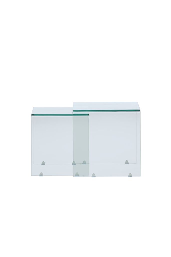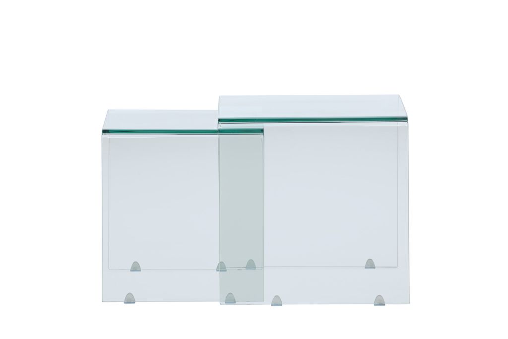 Design och Material: Tillverkat i högkvalitativt glas, borden har en tidlös design som passar in i många olika inredningsstilar. Den transparenta ytan reflekterar ljuset på ett vackert sätt, vilket skapar en ljus och inbjudande atmosfär.