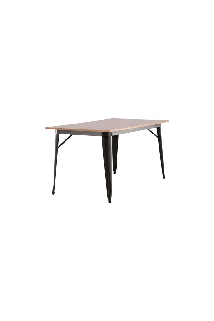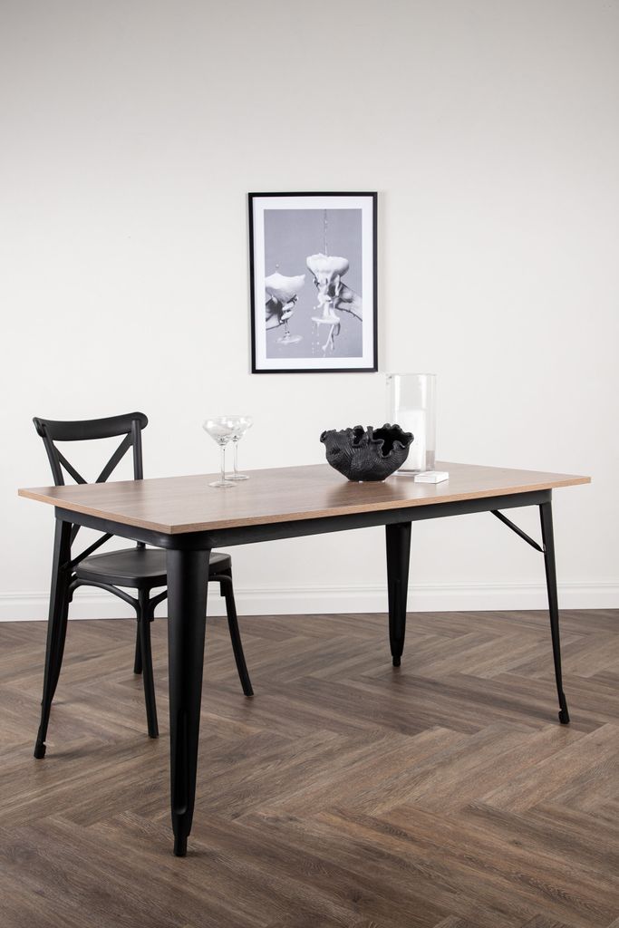 Stilrent matbord i skandinavisk design med svart MDF-skiva och robusta metallben. Perfekt för moderna hem.