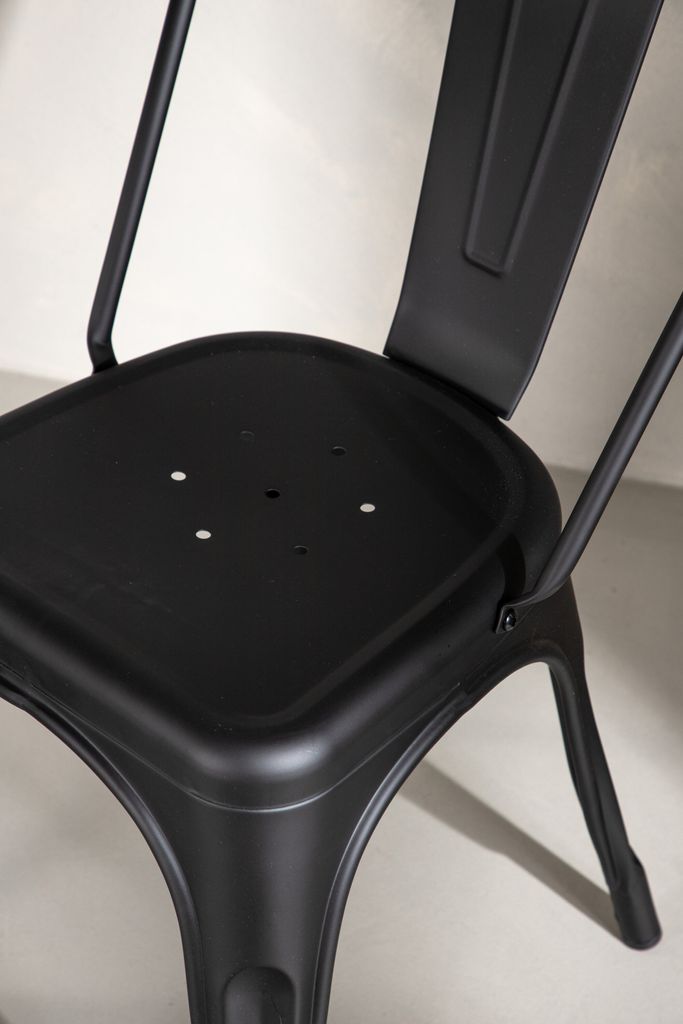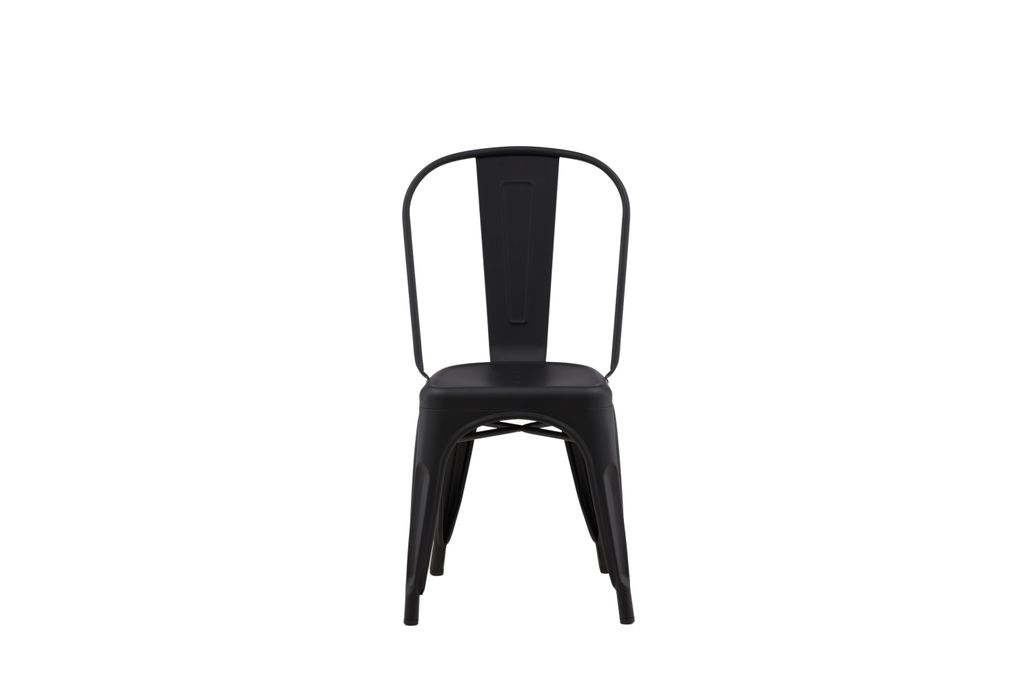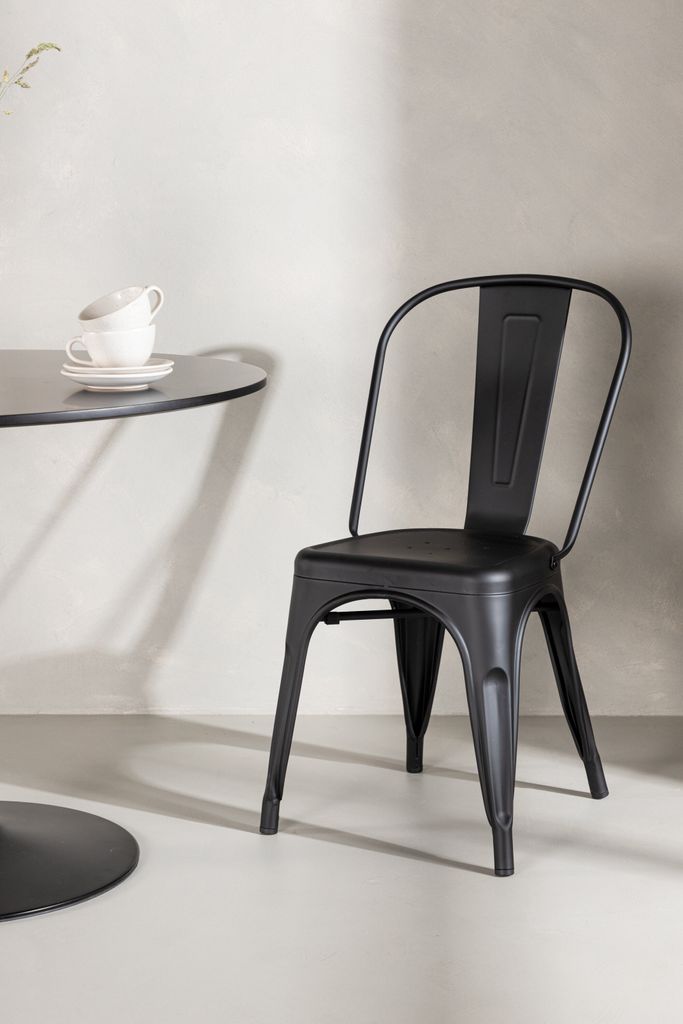 Klassisk och modern matstol i slitstark svart metall. Perfekt för stilrena matgrupper.