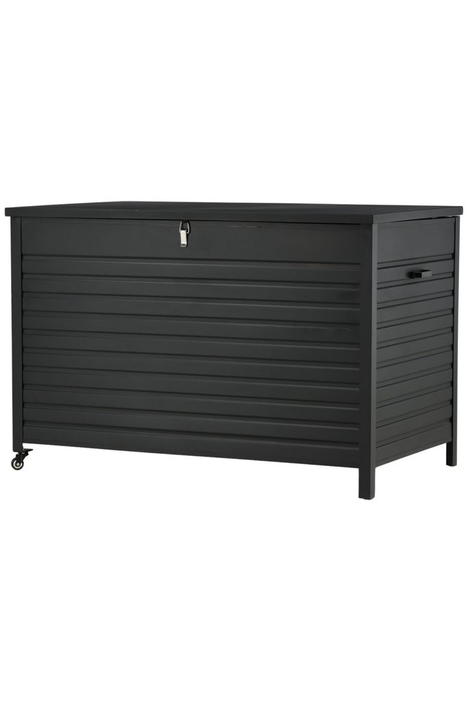 Upptäck Venture Home Tiana Förvaring, en stilren och praktisk dynbox som är perfekt för att hålla dina dynor och utemiljöartiklar organiserade och skyddade. Tillverkad i svart aluminium med polyesterdetaljer ger den en modern touch till din utomhusmiljö.