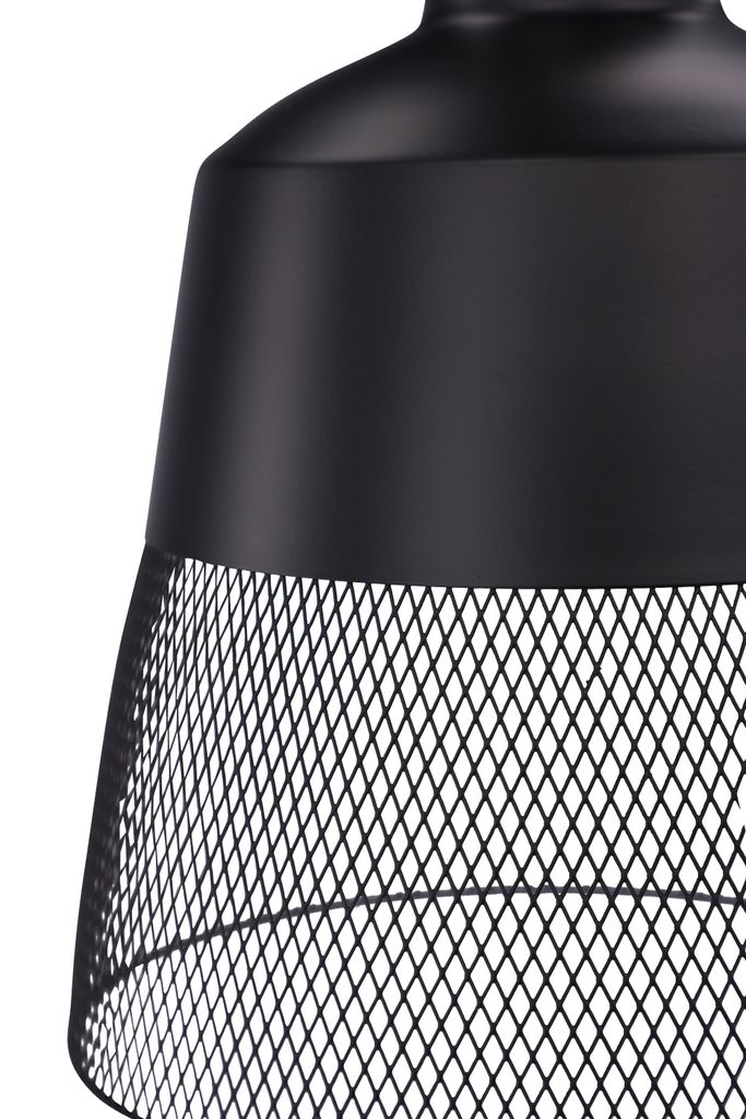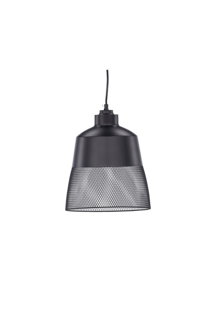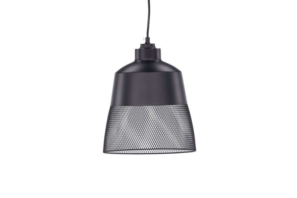 Tidlös taklampa i matt svart järn med unikt meshmönster, perfekt för varje rum.