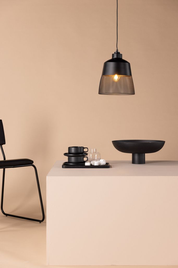 Venture Home Toulon taklampa är det perfekta valet för dig som vill förnya belysningen med stil. Den matta svarta basen i järn ger ett elegant och modernt uttryck, medan den nedre delen av lampskärmen har ett fint meshmönster som inte bara gör lampan unik, utan även sprider ett behagligt ljus i hela rummet. Den nätta storleken på 29 cm i höjd och 24 cm i bredd/djup gör att lampan passar i de flesta rum. Placera den över matbordet eller soffbordet för att skapa en inbjudande atmosfär och en vacker inredningsdetalj. Med en vikt på endast 0,8 kg och ingen montering krävd, är den enkel att installera och använda.