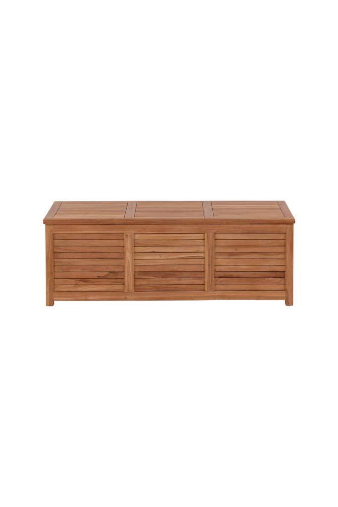 Elegant och praktisk dynbox i teak som smälter in i utomhusmiljön. Perfekt för förvaring av dynor och tillbehör.