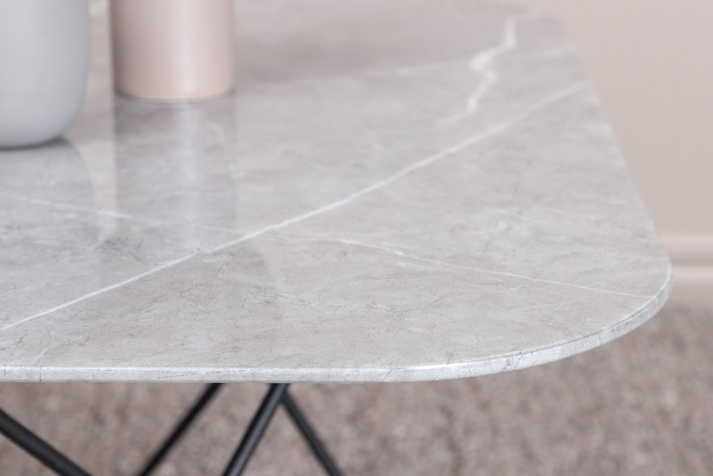 Marmorglaset, med sitt unika och naturliga mönster, gör varje bord unikt och bjuder in till ett sofistikerat uttryck i ditt hem. Bordet står stadigt på sin svarta metallstomme och är dessutom lätt att montera.