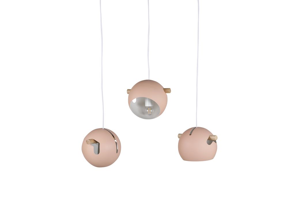 Upptäck Venture Home Tubbie Taklampa, en perfekt kombination av stil och funktionalitet. Denna taklampa blir en vacker inredningsdetalj och en praktisk ljuskälla i ditt hem. Med sina tre mjuka ljuskällor och den trendiga dusty rosa färgen, kompletterad av detaljer i elegant valnöt, skapar den en varm och lugn atmosfär.