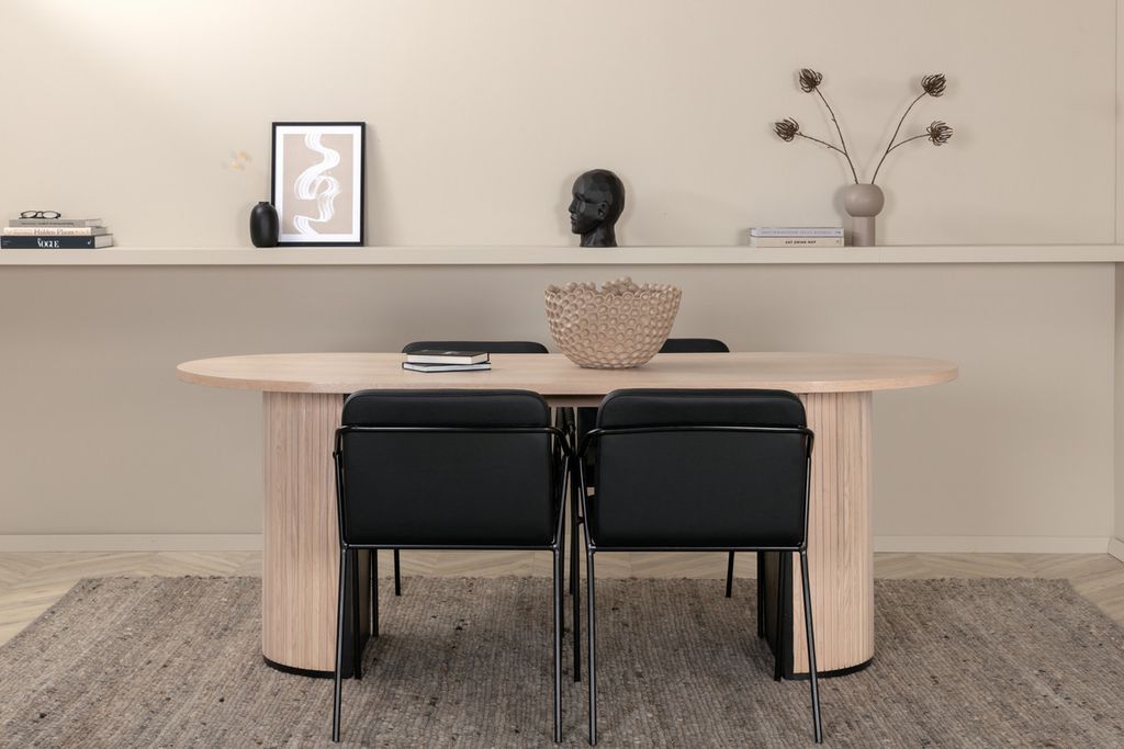 Venture Home Bianca & Polly Ovalt Matbord 200 x 90 Svart + 4 st Matstolar Svart