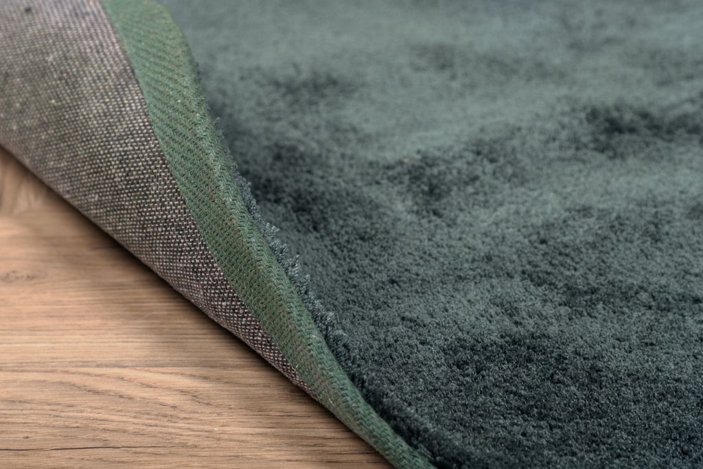 Den skogsgröna färgen ger en naturlig och lugnande atmosfär, idealisk för vardagsrummet, köket eller vid sängkanten. Den levande glansen i materialet förstärker mattans lyxiga karaktär och gör den till en iögonfallande detalj i din inredning.