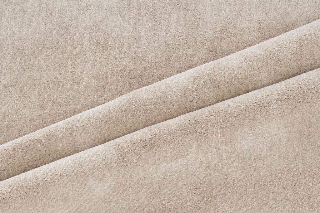 Lyxig champagnefärgad polyestermatta med elegant glans, perfekt för stilfull inredning.