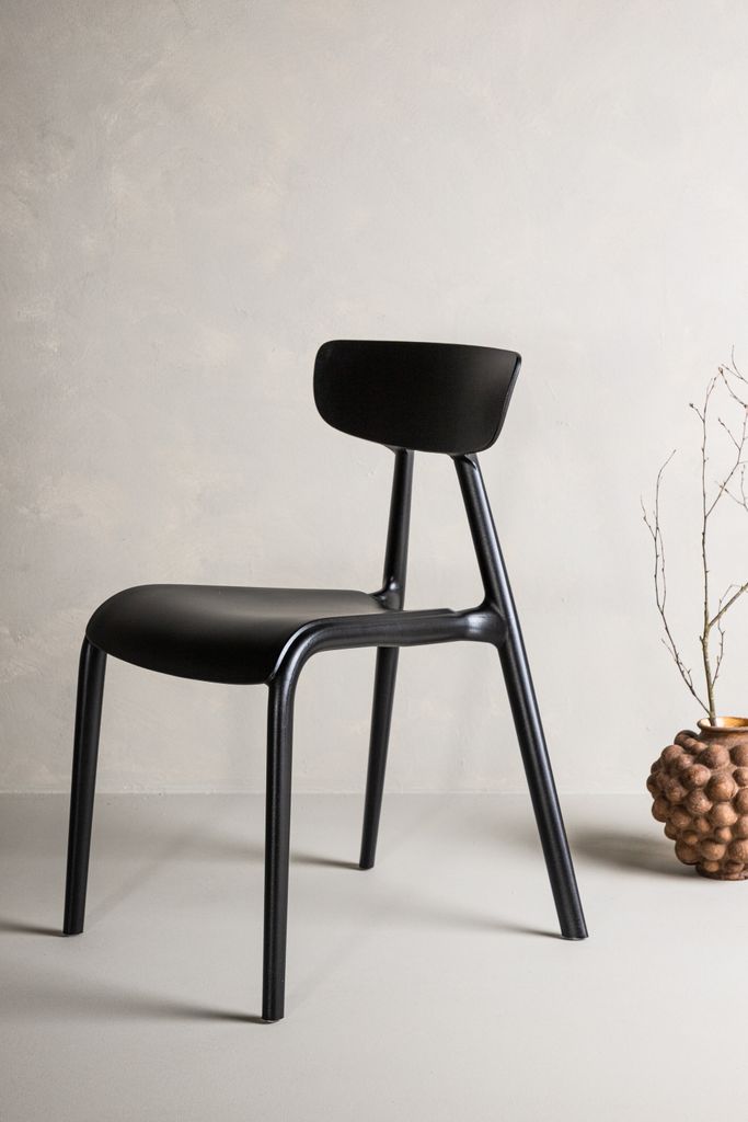 Skapa en konstnärlig känsla och sätt en personlig prägel på inredningen i köket eller vardagsrummet med stolar från serien Ursholmen! Dessa eleganta stolar är tillverkade av slitstark plast i en sofistikerad svart färg, vilket gör dem enkla att matcha med övrig inredning. Den smäckra stolsryggen och den något djupare sittplatsen ger utmärkt komfort, medan de lätt utsvängda benen förstärker den skandinaviska designen.