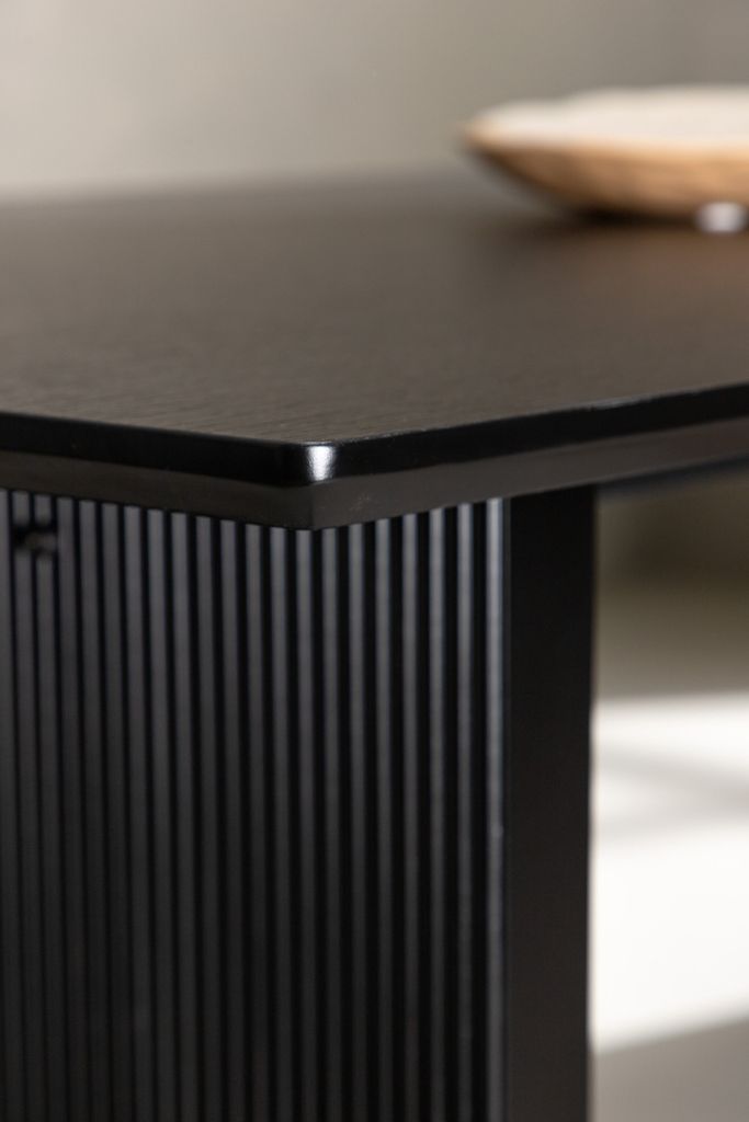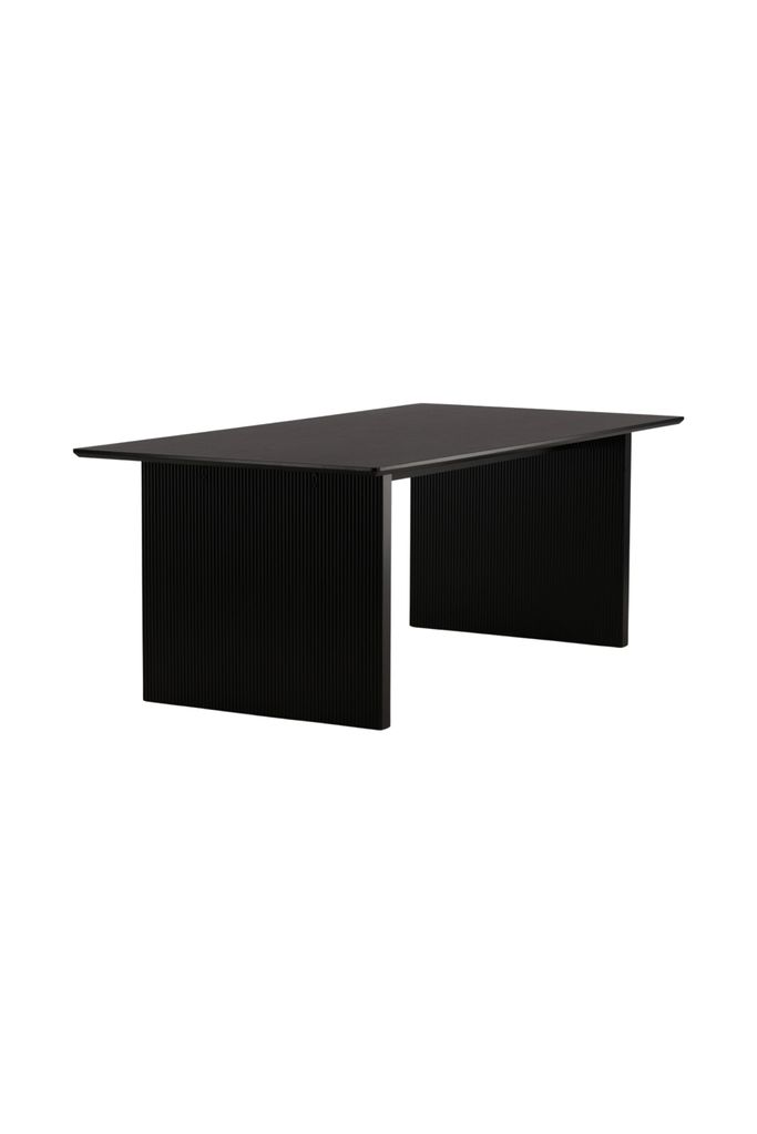 Venture Home Vail Matbord kombinerar stilren nordisk design med praktisk funktionalitet. Bordet är tillverkat i slitstark MDF och har en tunn, rektangulär bordsskiva som balanseras på två bastanta träskivor i underredet. Den sotiga svarta kulören ger en klassisk och tidlös känsla som enkelt kan matchas med övrig inredning. Med mått på 200 x 100 cm erbjuder bordet generöst utrymme för både vardagsmåltider och festliga tillfällen.
