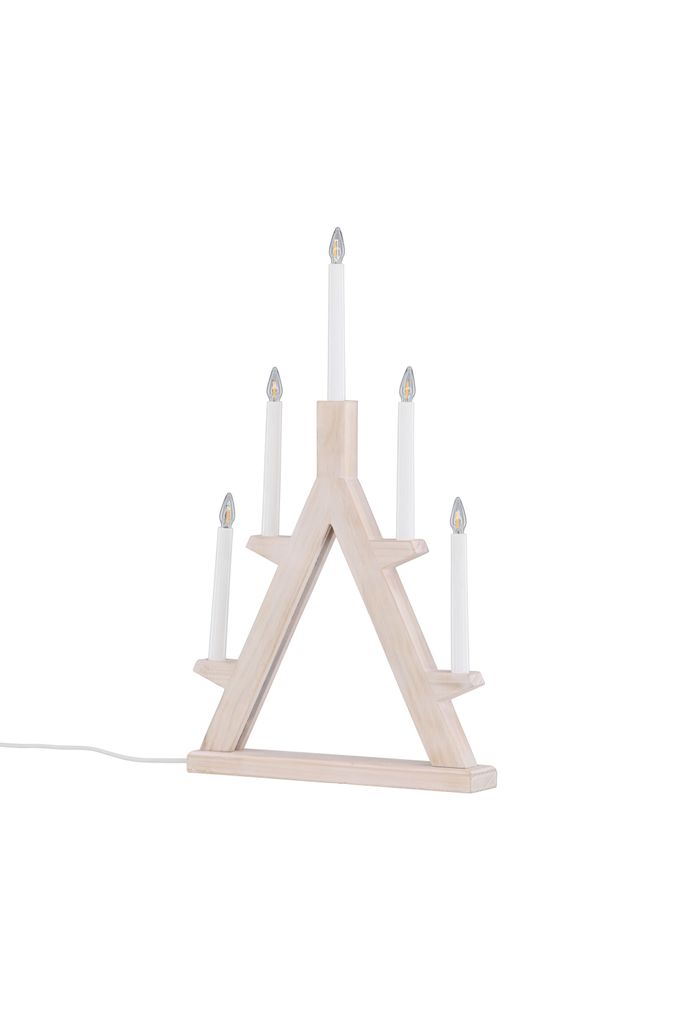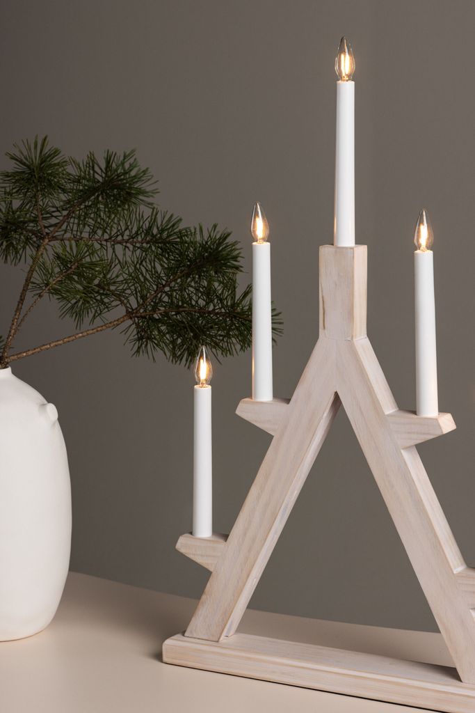 Traditionell nordisk adventsljusstake i vitvättad tall. Fem lampor ger en varm och inbjudande glöd.