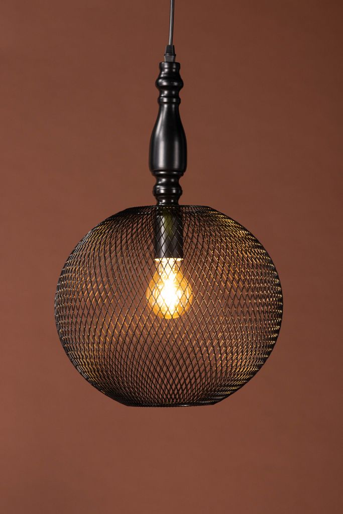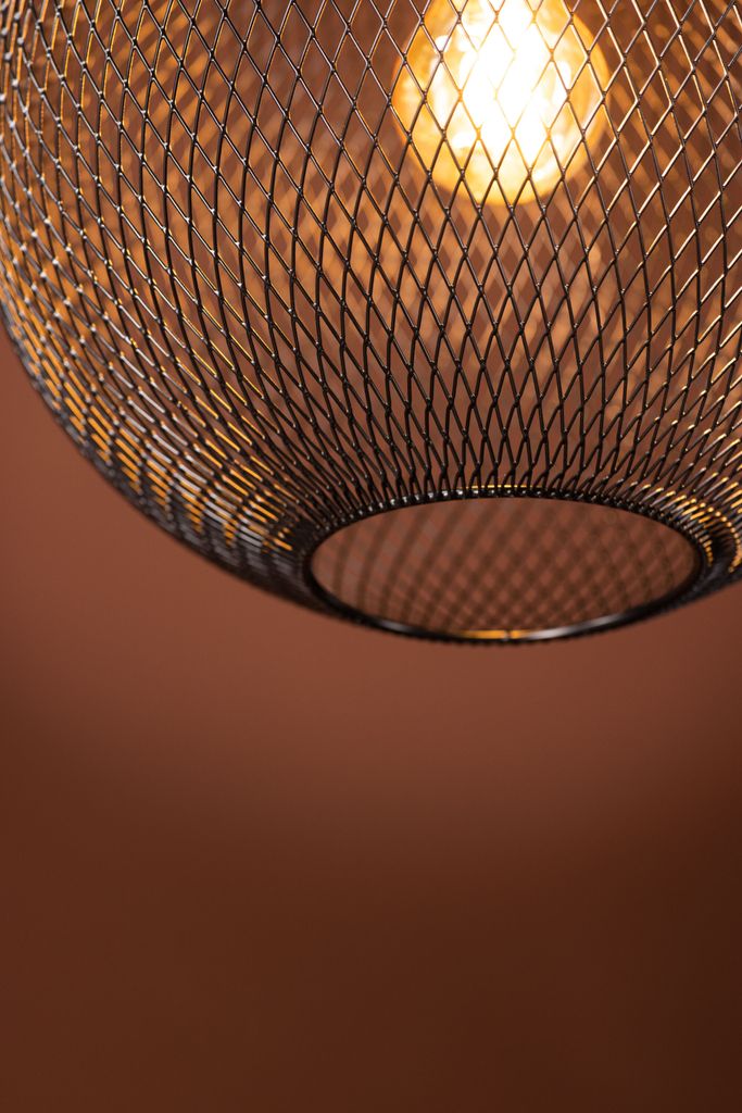 Elegant och unik taklampa med meshmönster och stilren svart design. Perfekt över matbordet eller soffbordet.