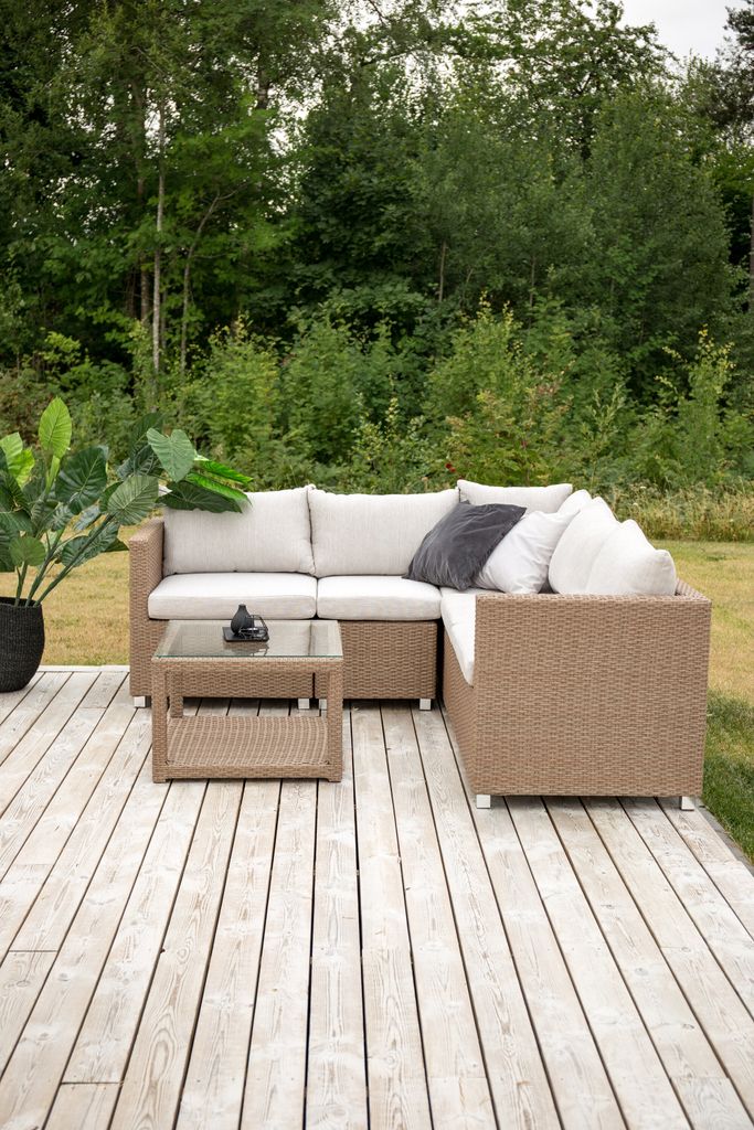 Förvandla din uteplats med Vamos loungeset som kombinerar elegans och komfort. Med sin lyxiga, avkopplade design och raka nordiska former, är denna soffgrupp det perfekta tillskottet för sommarens uteliv.