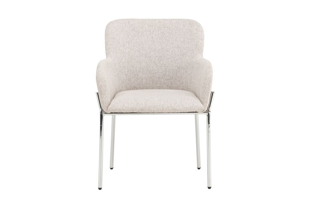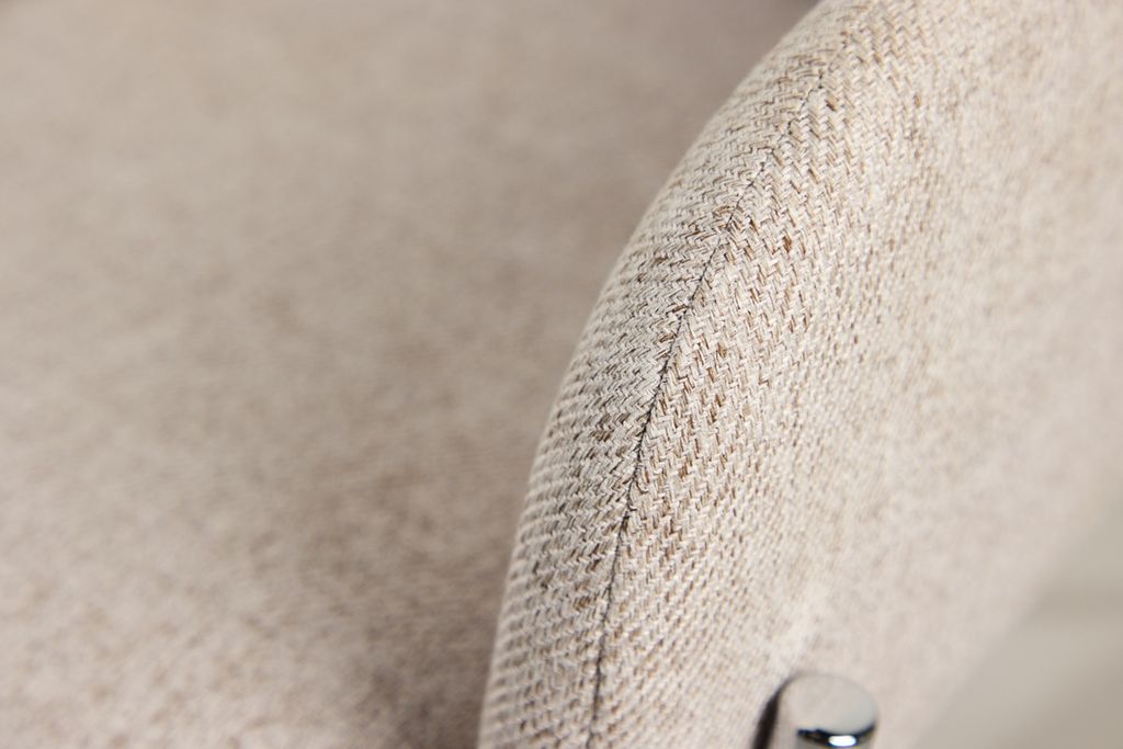 Den neutrala, ljusa klädseln harmonierar enkelt med olika inredningsstilar och framhävs av de eleganta benen i stål, som ger både ett modernt uttryck och en robust konstruktion.