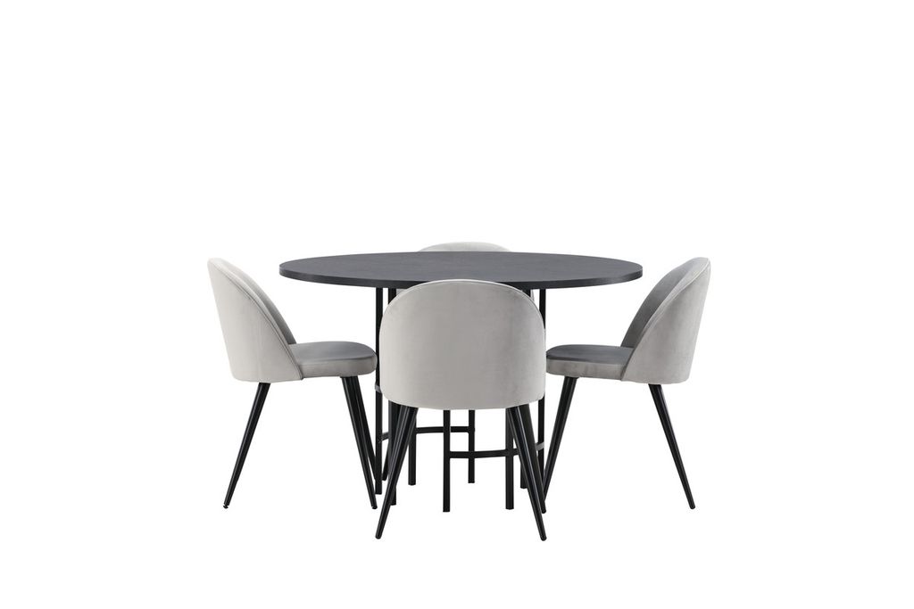 Venture Home Velvet & Copenhagen 4 st Matstolar Grå + Runt Matbord ⌀115 Svart