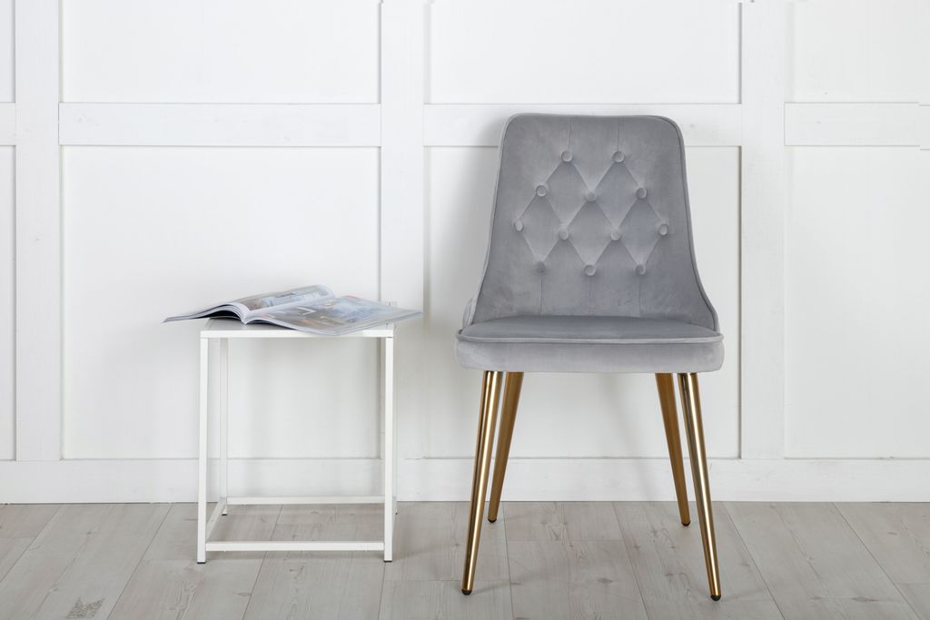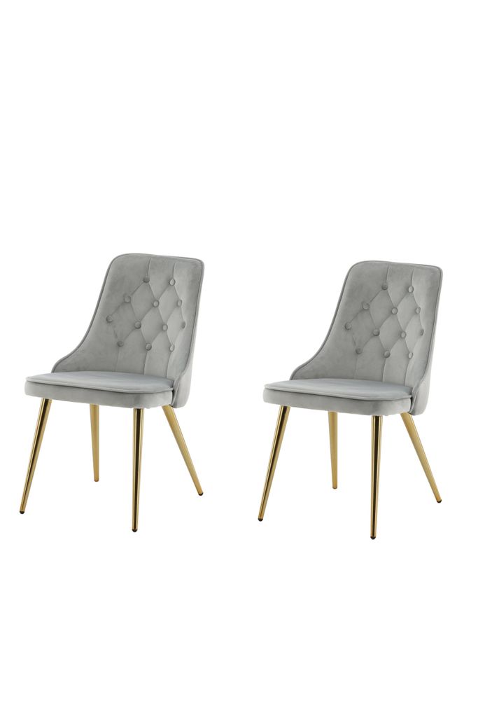 Förvandla ditt vardagsrum med våra eleganta Velvet Deluxe Matstolar i grått sammet och mässingsben.