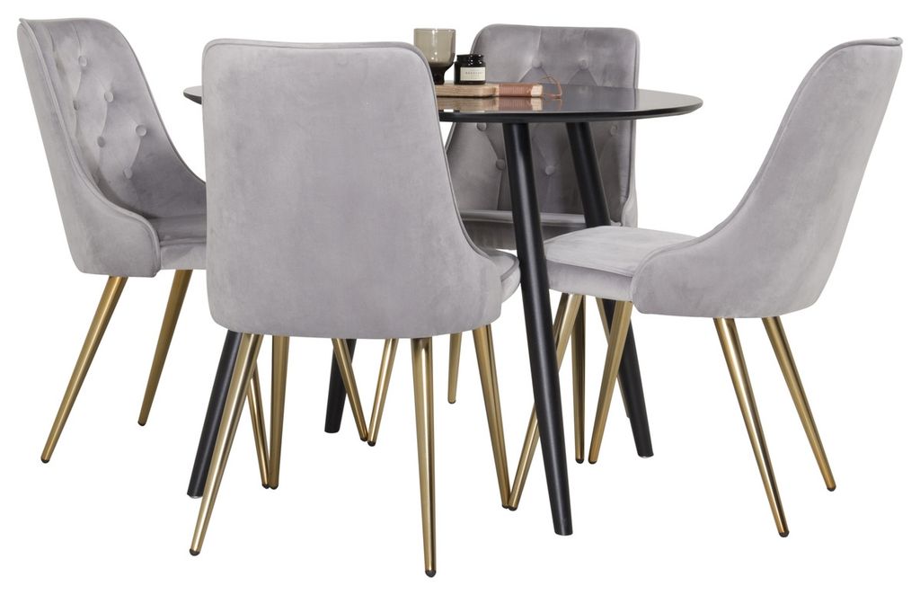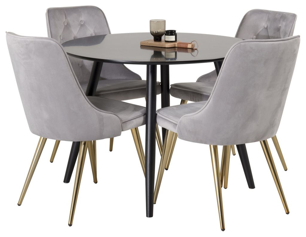 Venture Home Velvet Deluxe & Plaza 4 st Matstolar Grå + Runt Matbord ⌀100 Svart